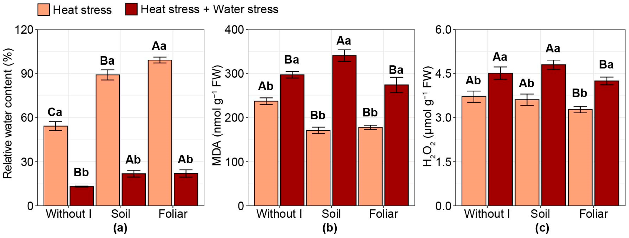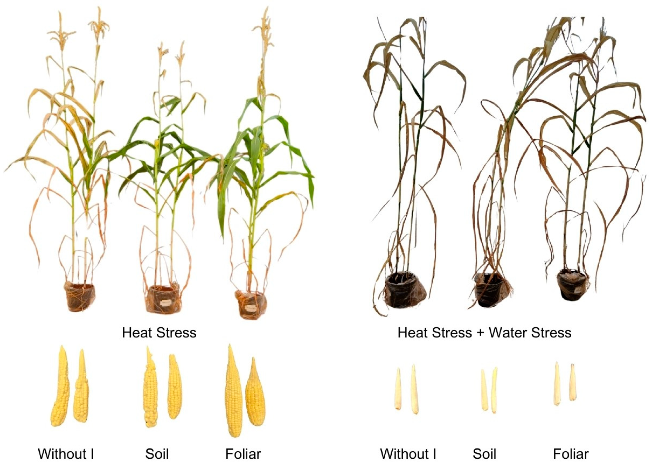 | T2 | No iodine application | Heat stress + Water stress |