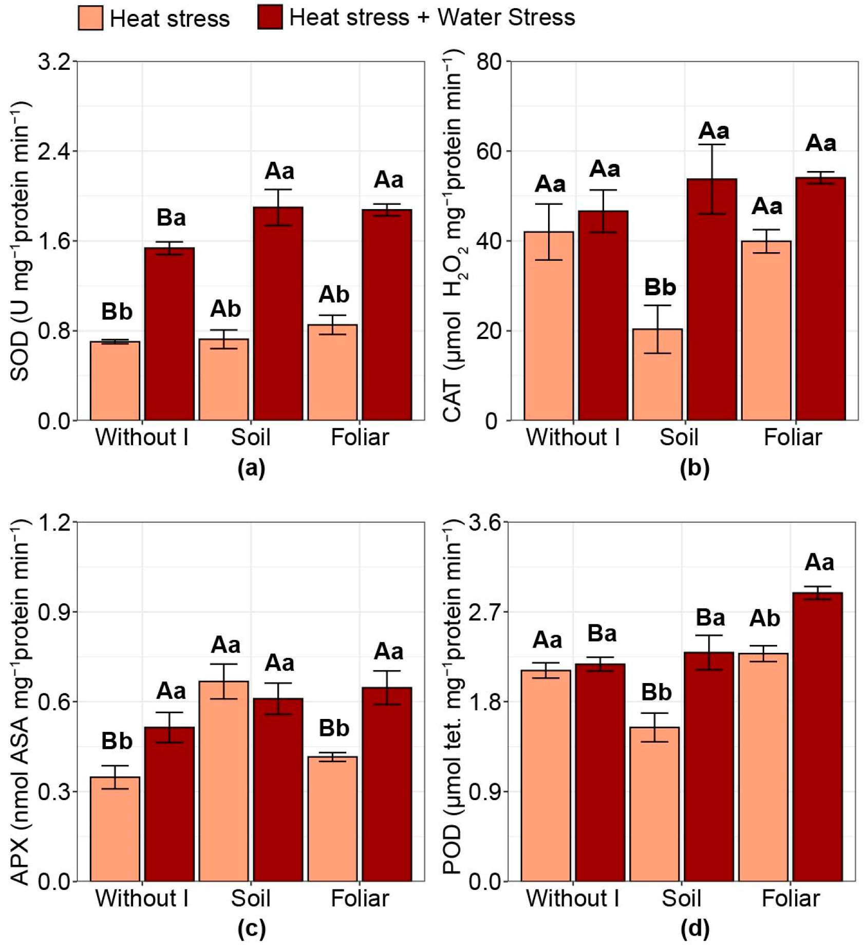 | T3 | Soil iodine application (2 kg of iodine ha−1) | Heat stress |