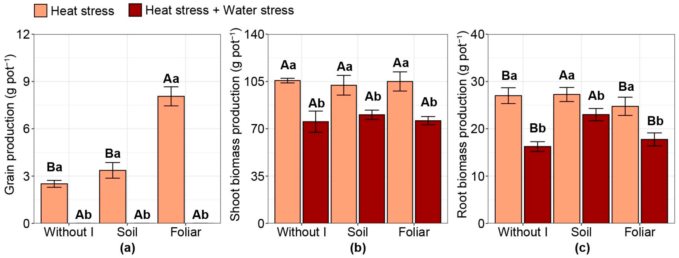 | T5 | Foliar iodine application (200 g of iodine ha−1) | Heat stress |