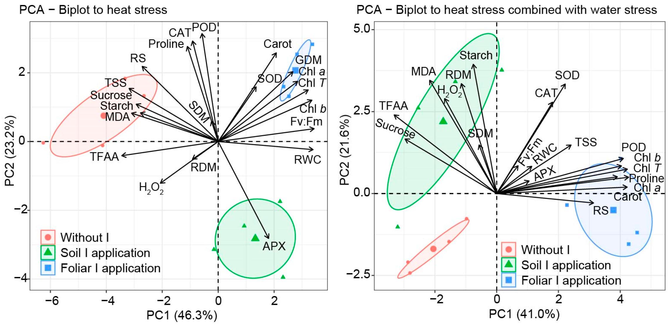 | Treatments | Iodine Application | Stress |