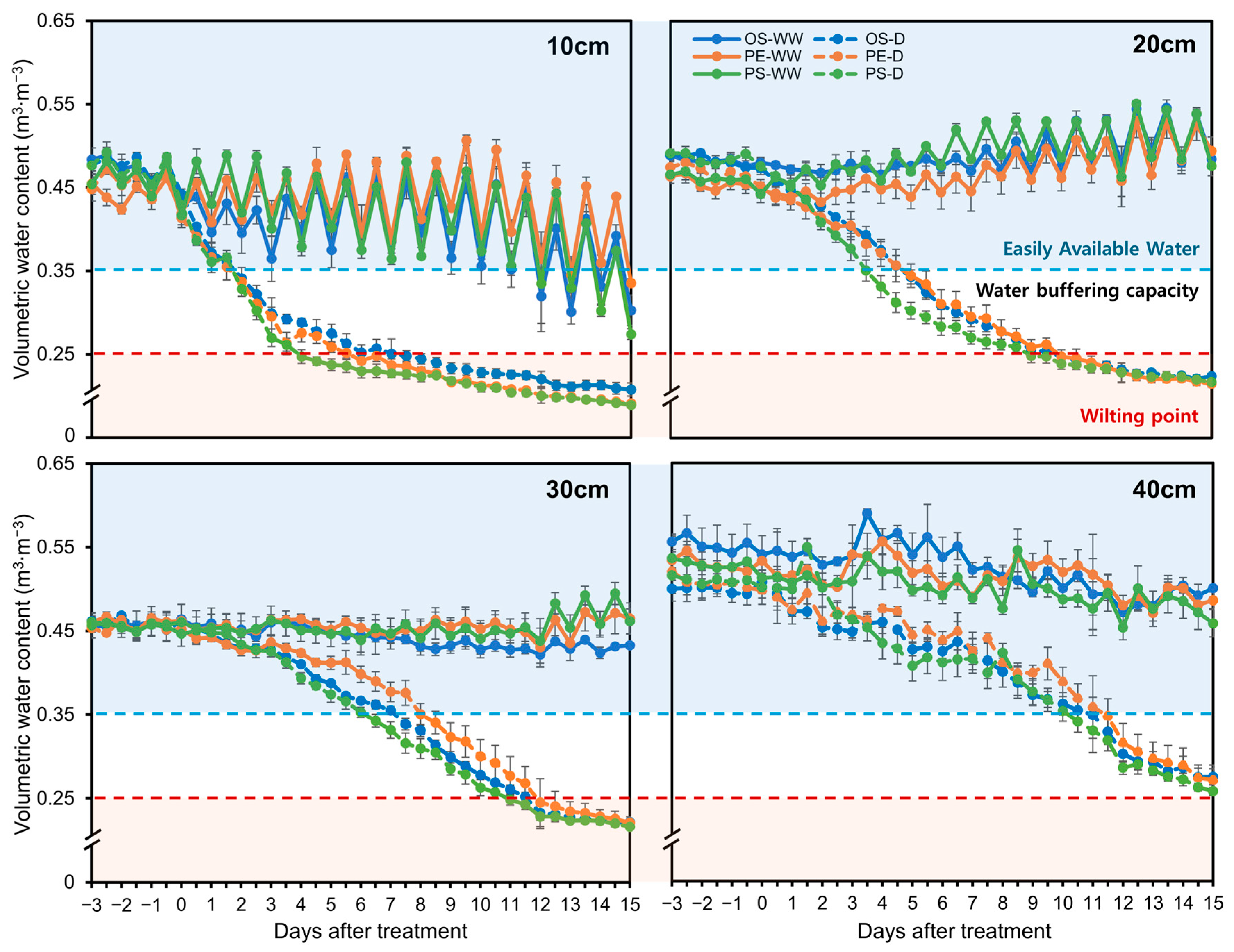 2.1. Volumetric Water Content by Soil Depth