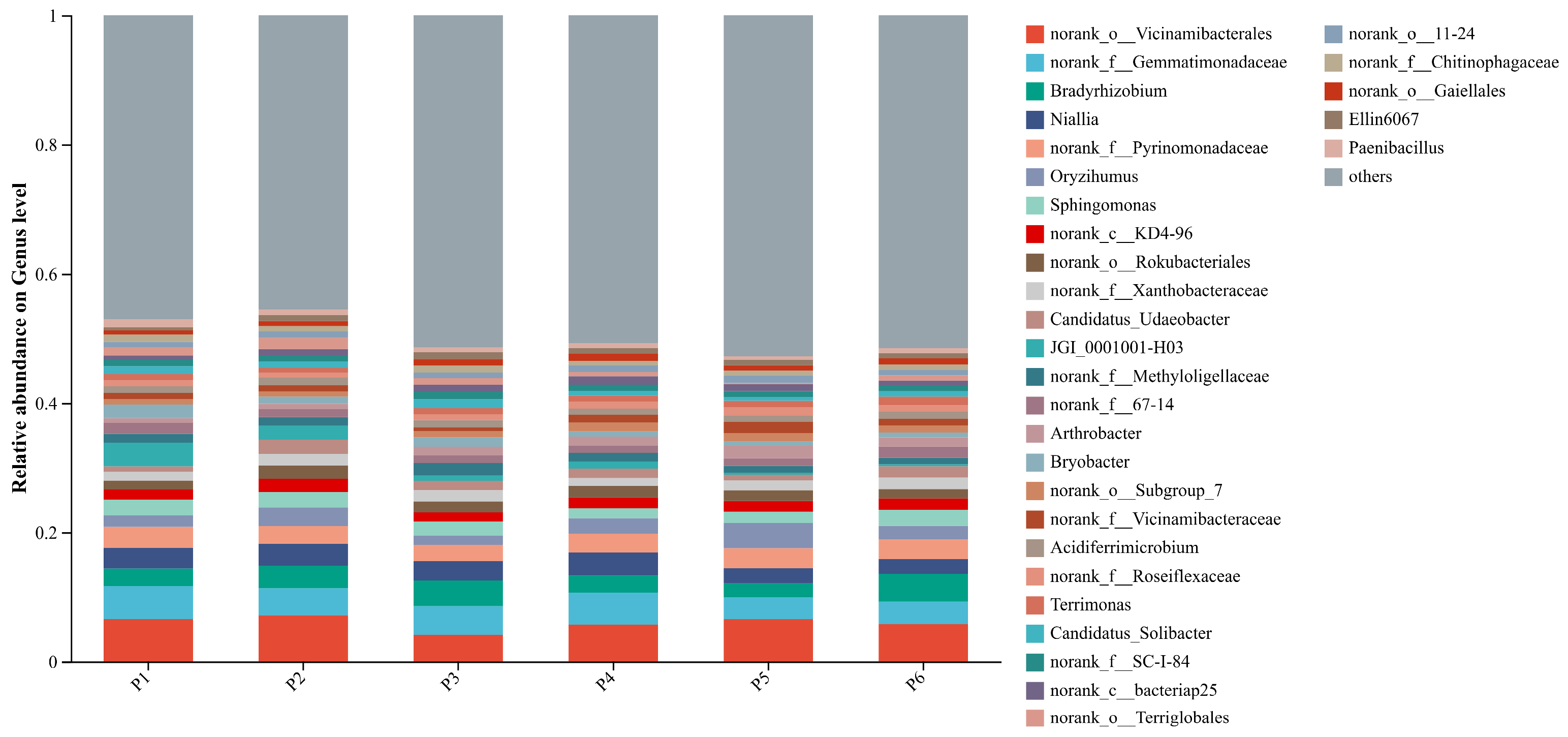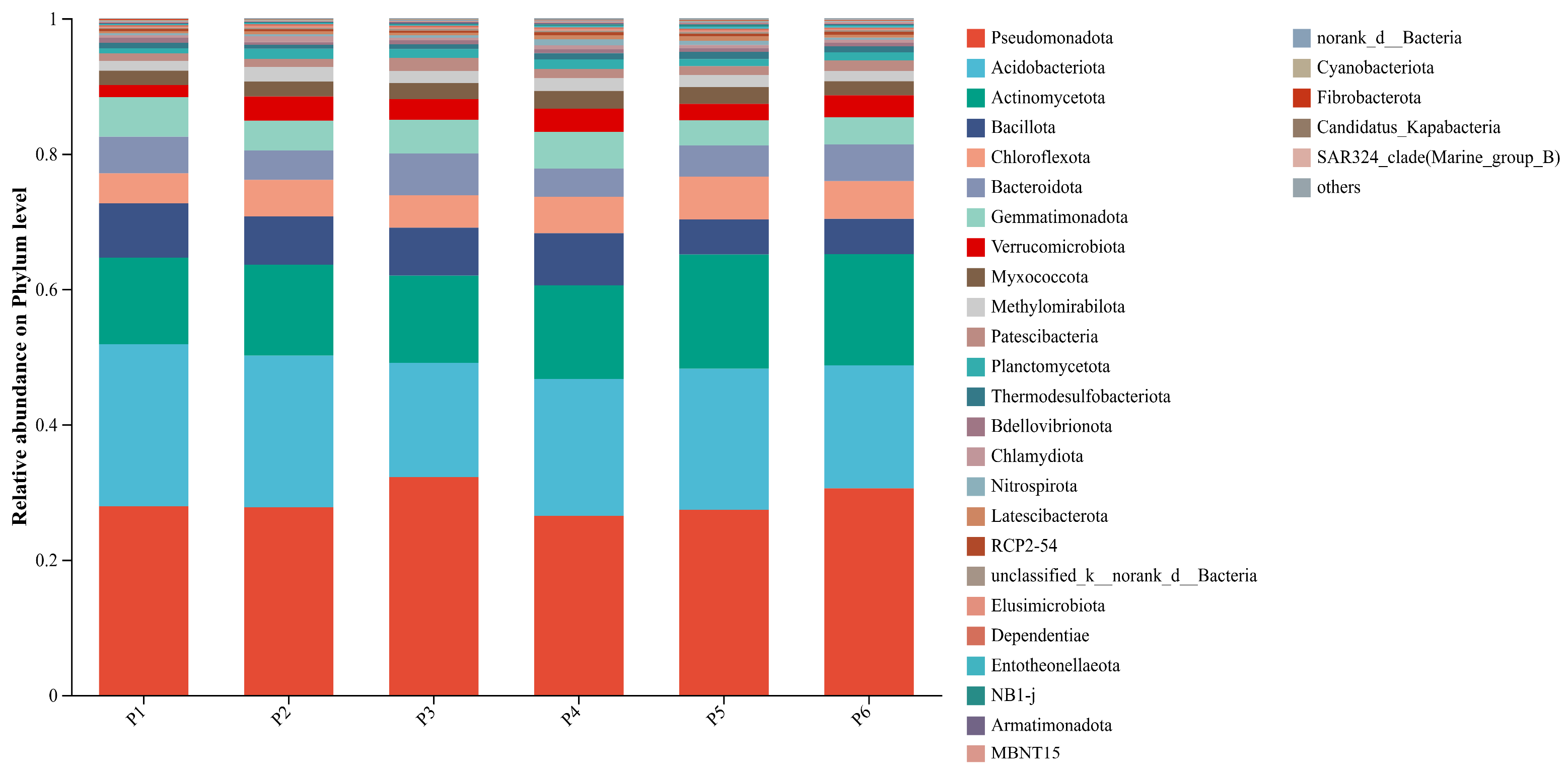 3.3.2. Composition and Relative Abundance of Soil Bacterial Community
