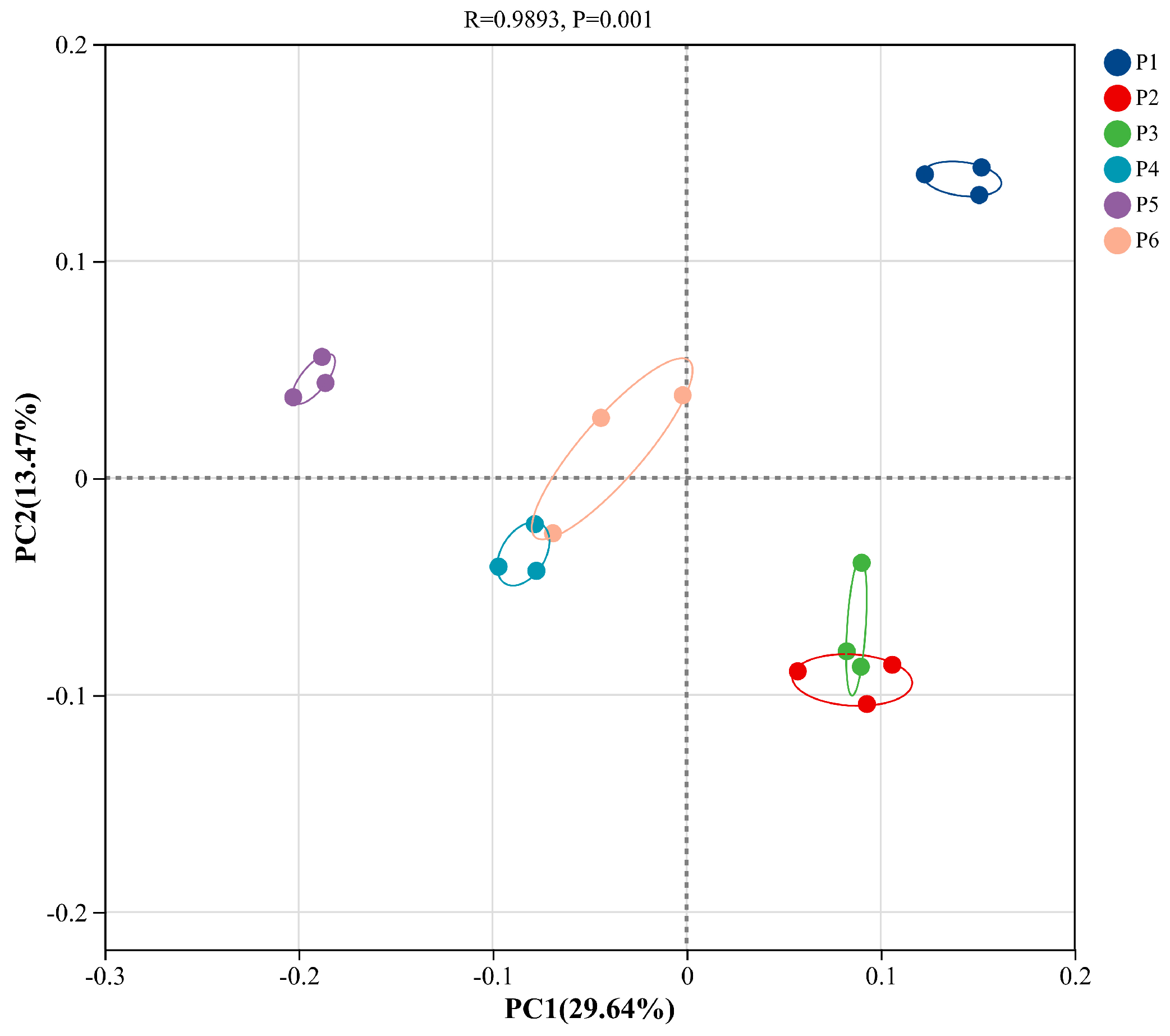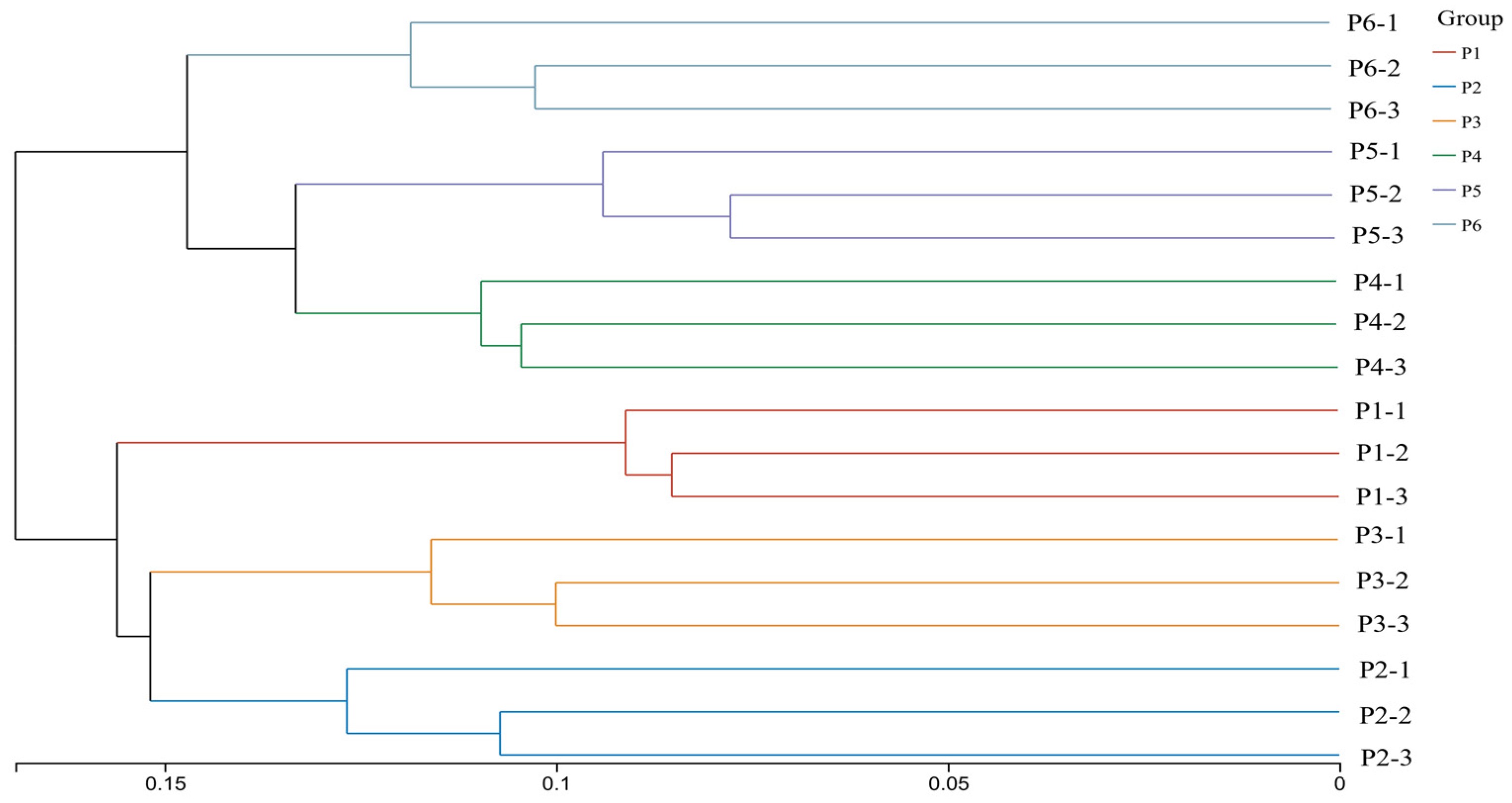| P6 | 0.86 ± 0.01 a | 2.20 ± 0.04 a | 0.76 ± 0.00 a | 2.30 ± 0.07 b | 28.23 ± 1.41 bc | 81.70 ± 1.45 b | 1106.67. ± 58.12 ab | 342.93 ± 6.16 ab |