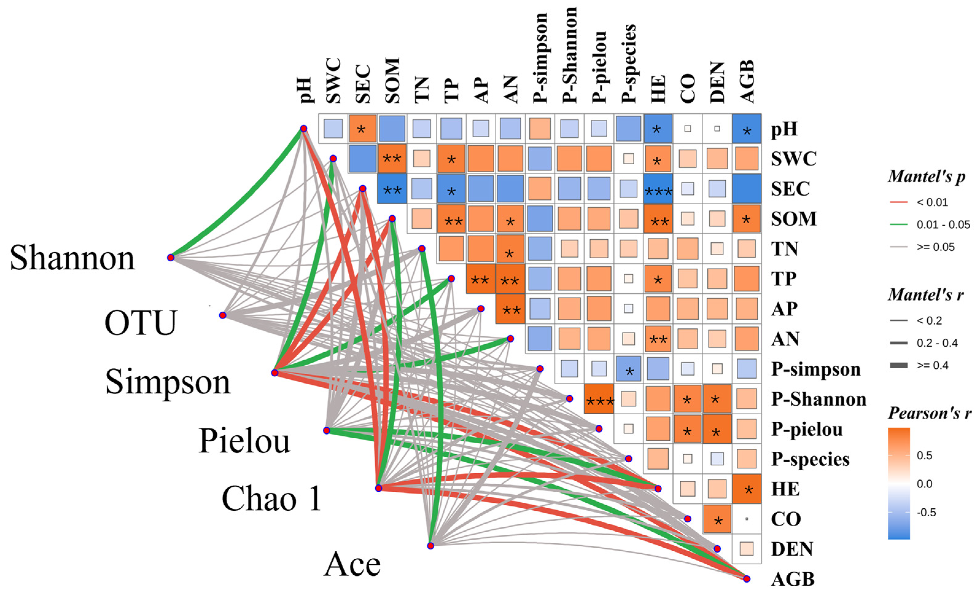 - Shu, X.; Liu, W.; Hu, Y.; Chen, G.; Feng, K.; Wang, M.; Fan, L.; Han, B.; Liu, X.; Peng, S.; et al. Ecosystem multifunctionality and soil microbial communities in response to ecological restoration in an alpine degraded grassland. Front. Plant Sci. 2023, 14, 1173962. [Google Scholar] [CrossRef]