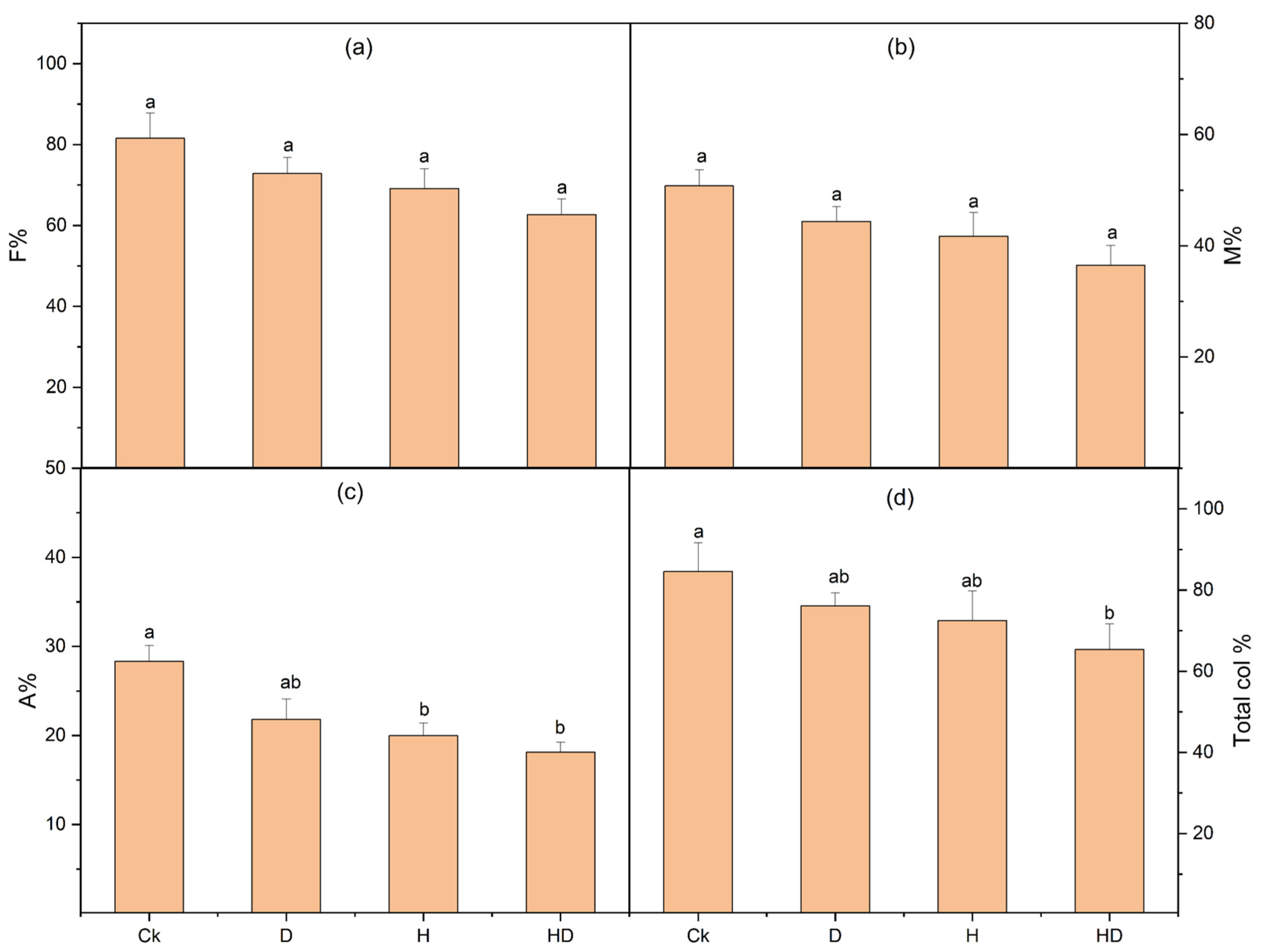 3.8. Arbuscular Mycorrhizal Symbiosis with Taiwan Lily Under Drought and Heat Stress