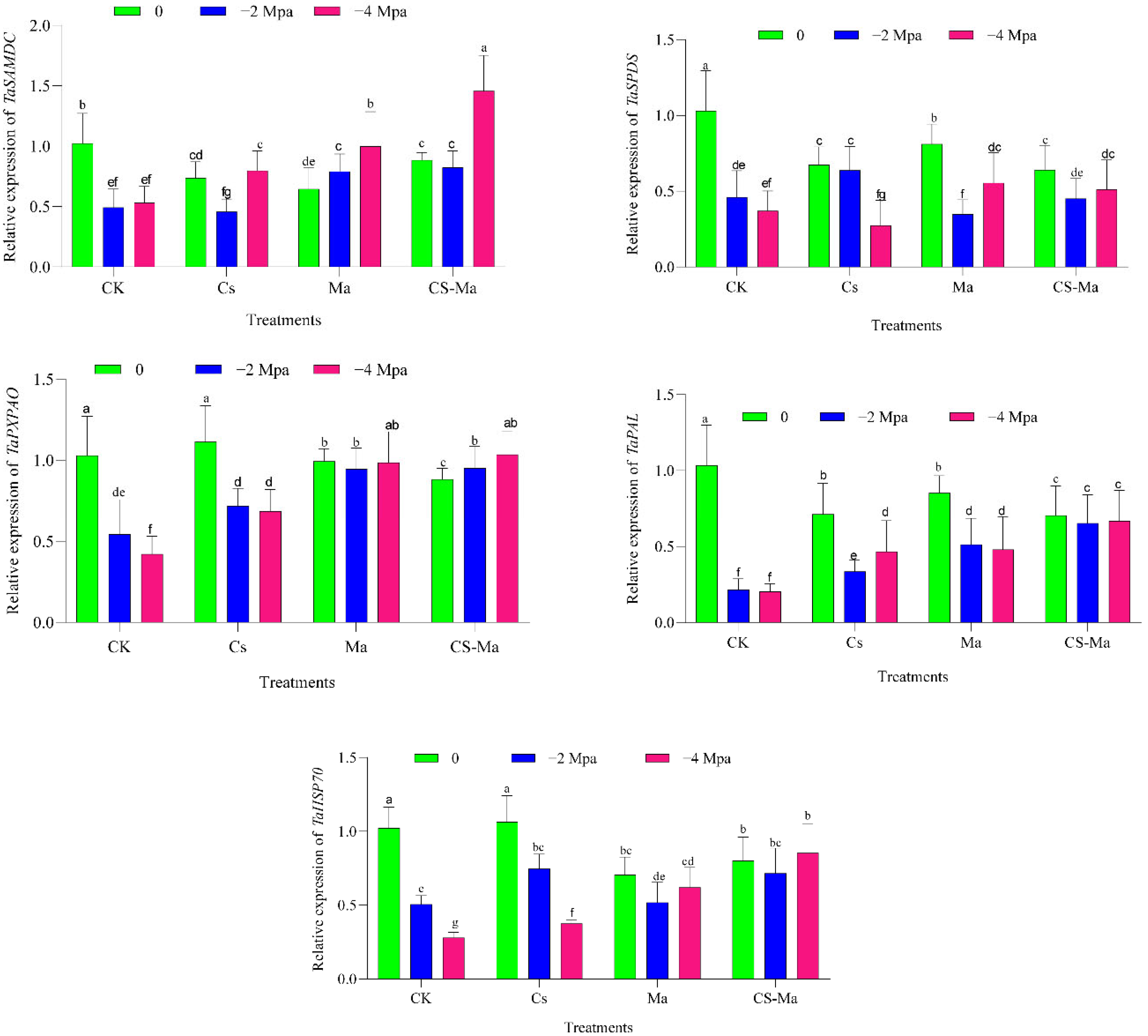 - Gholizadeh, F.; Janda, T.; Gondor, O.K.; Pál, M.; Szalai, G.; Sadeghi, A.; Turkoglu, A. Improvement of Drought Tolerance by Exogenous Spermidine in Germinating Wheat (Triticum aestivum L.) Plants Is Accompanied with Changes in Metabolite Composition. Int. J. Mol. Sci. 2022, 23, 9047. [Google Scholar] [CrossRef]