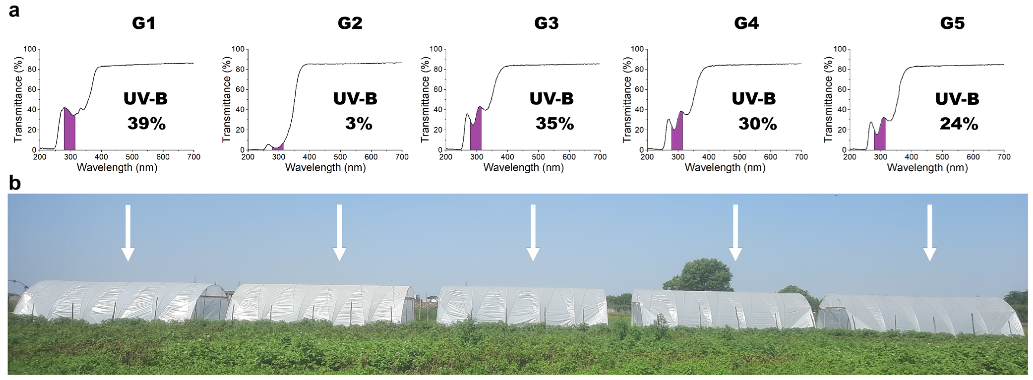 2.5. Comparative Analysis of Crop Responses and Optimal UV-B Transmittance