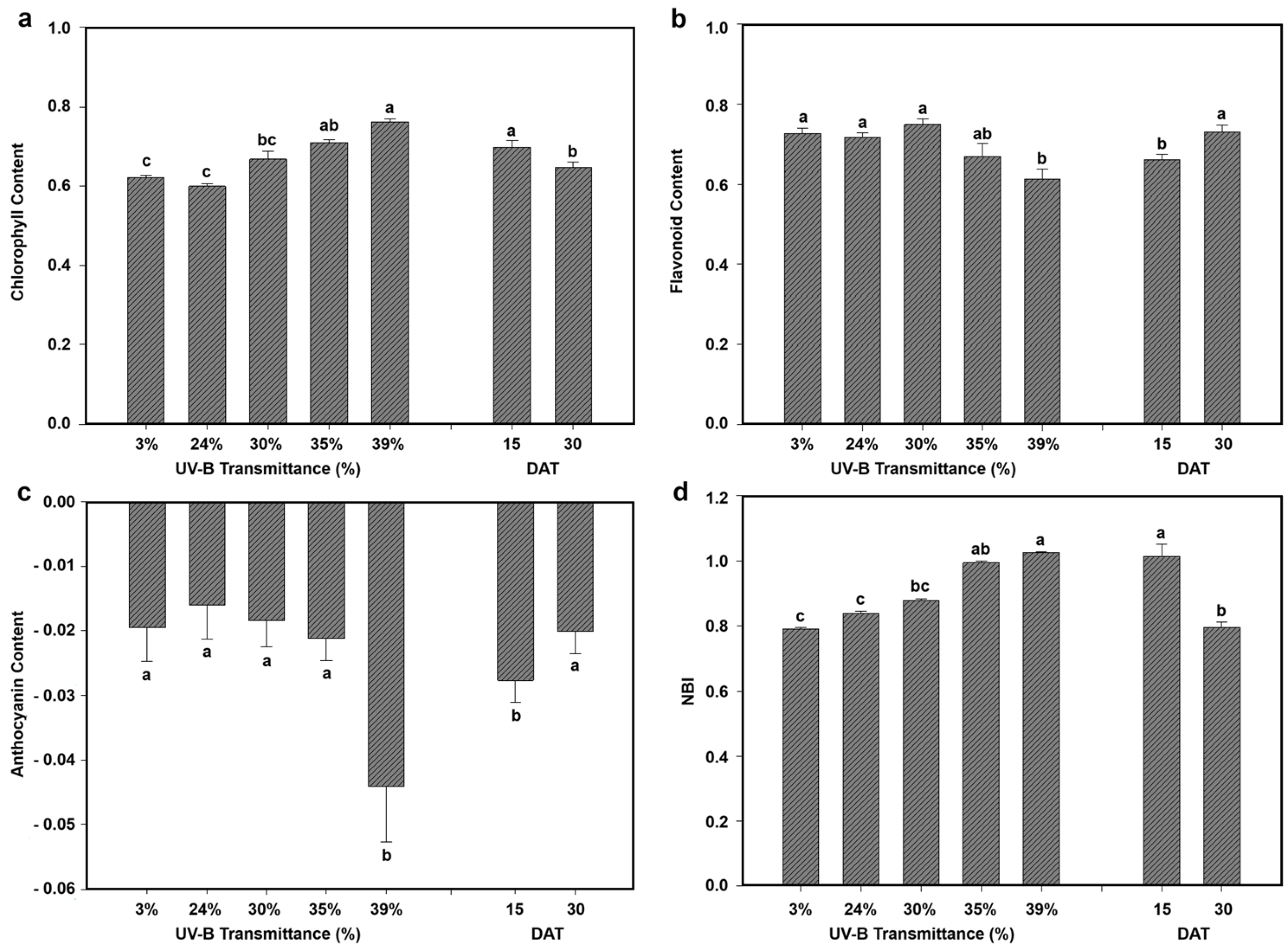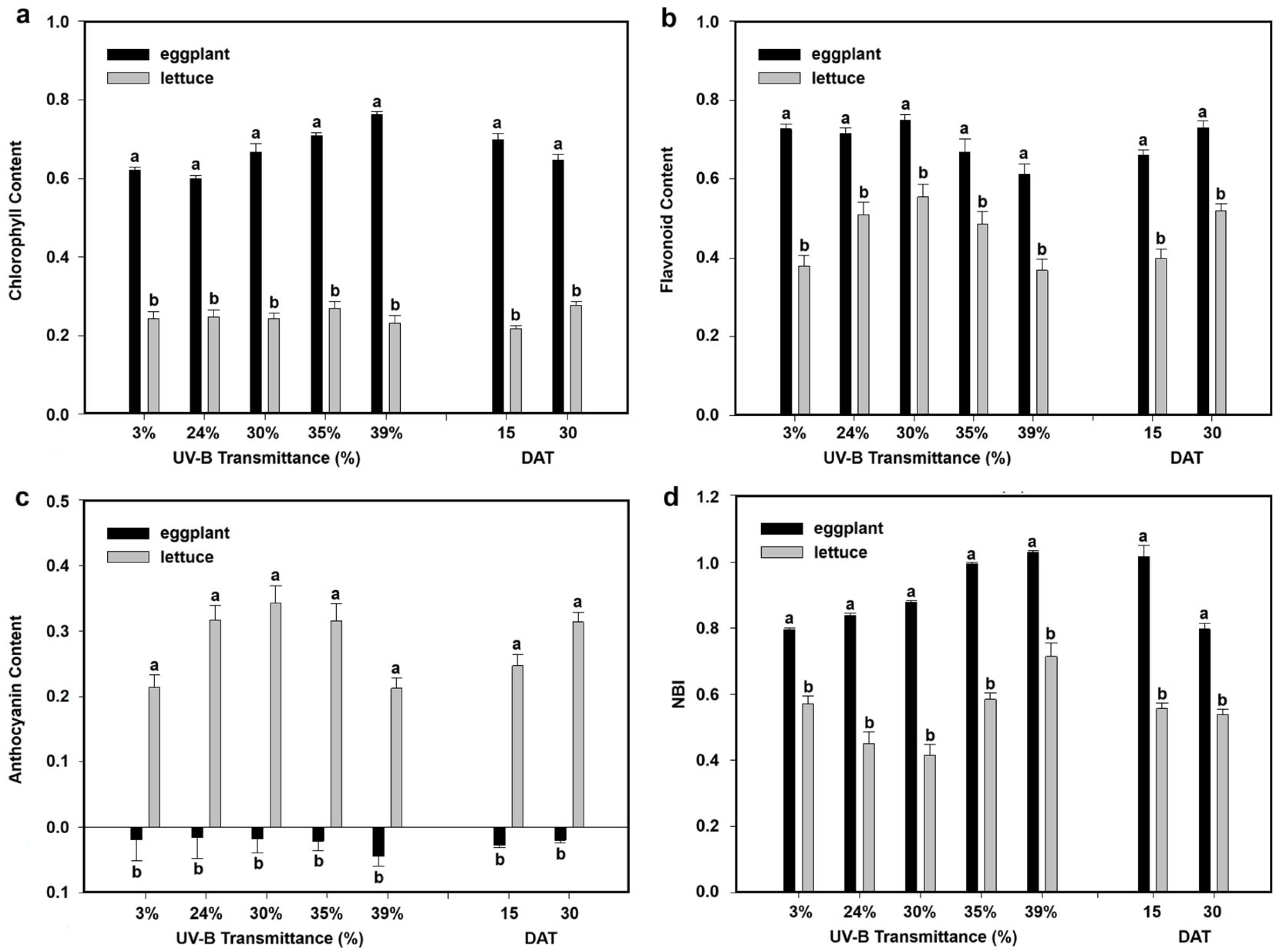 - Behn, H.; Tittmann, S.; Walter, A.; Schurr, U.; Noga, G.; Ulbrich, A. UV-B Transmittance of Greenhouse Covering Materials Affects Growth and Flavonoid Content of Lettuce Seedlings. Eur. J. Hortic. Sci. 2010, 75, 259–268. [Google Scholar] [CrossRef]