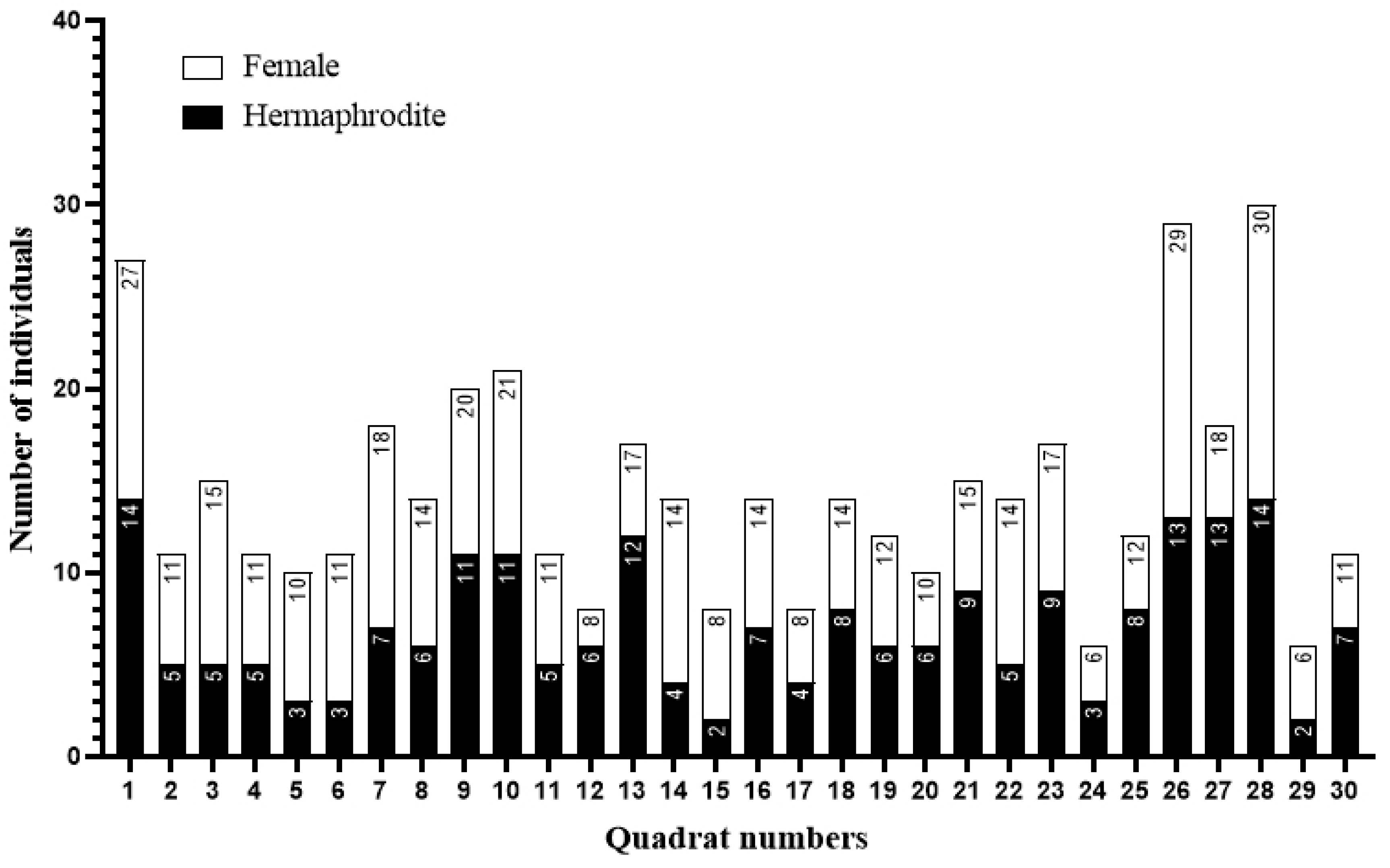 - Shibata, A.; Kudo, G. Size-dependent sex allocation and reproductive investment in a gynodioecious shrub. AoB Plants 2017, 9, plw089. [Google Scholar] [CrossRef]