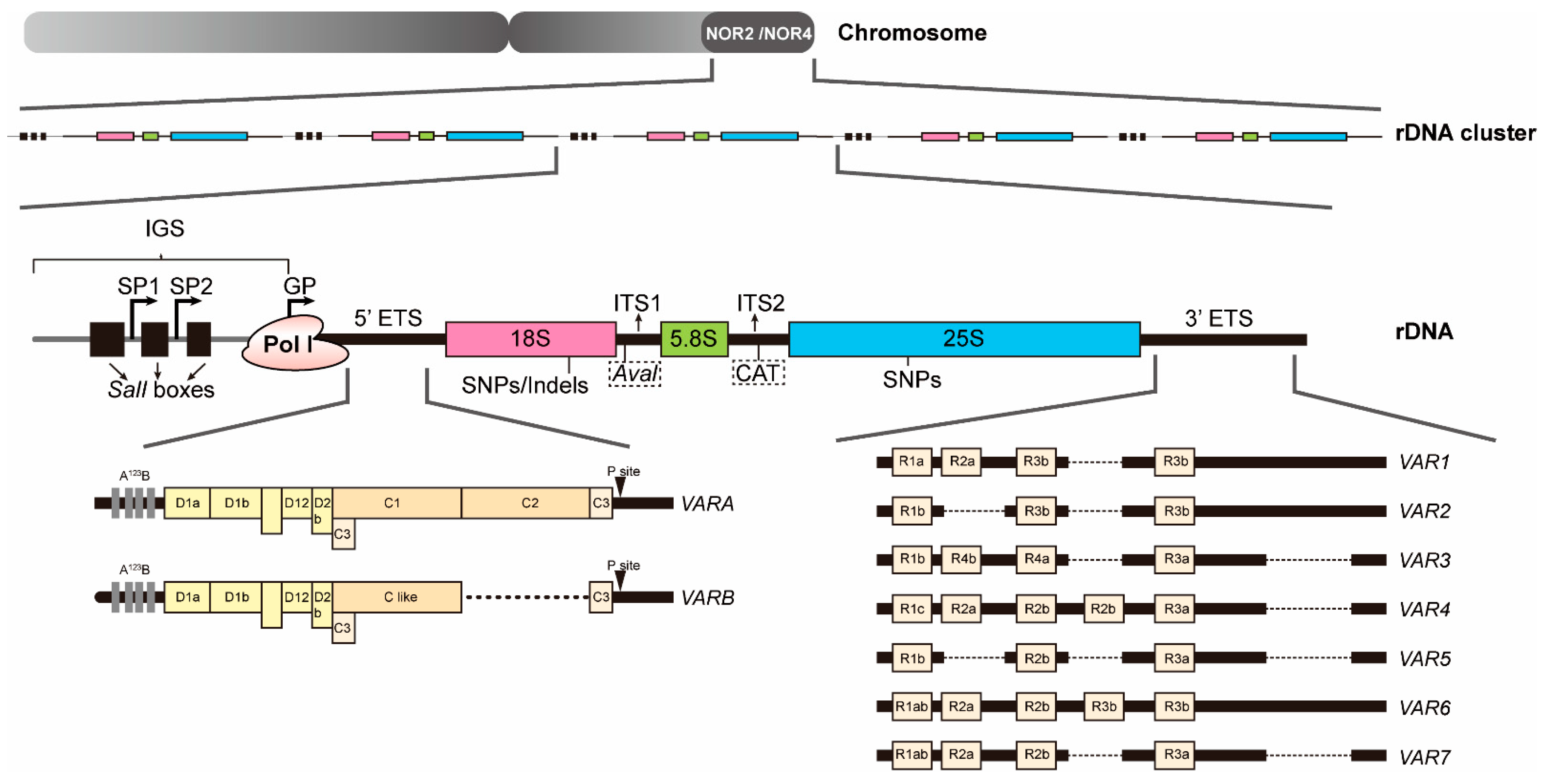 1.2. rDNA Sequence Variation and Epigenetic Selection of rDNA Variants