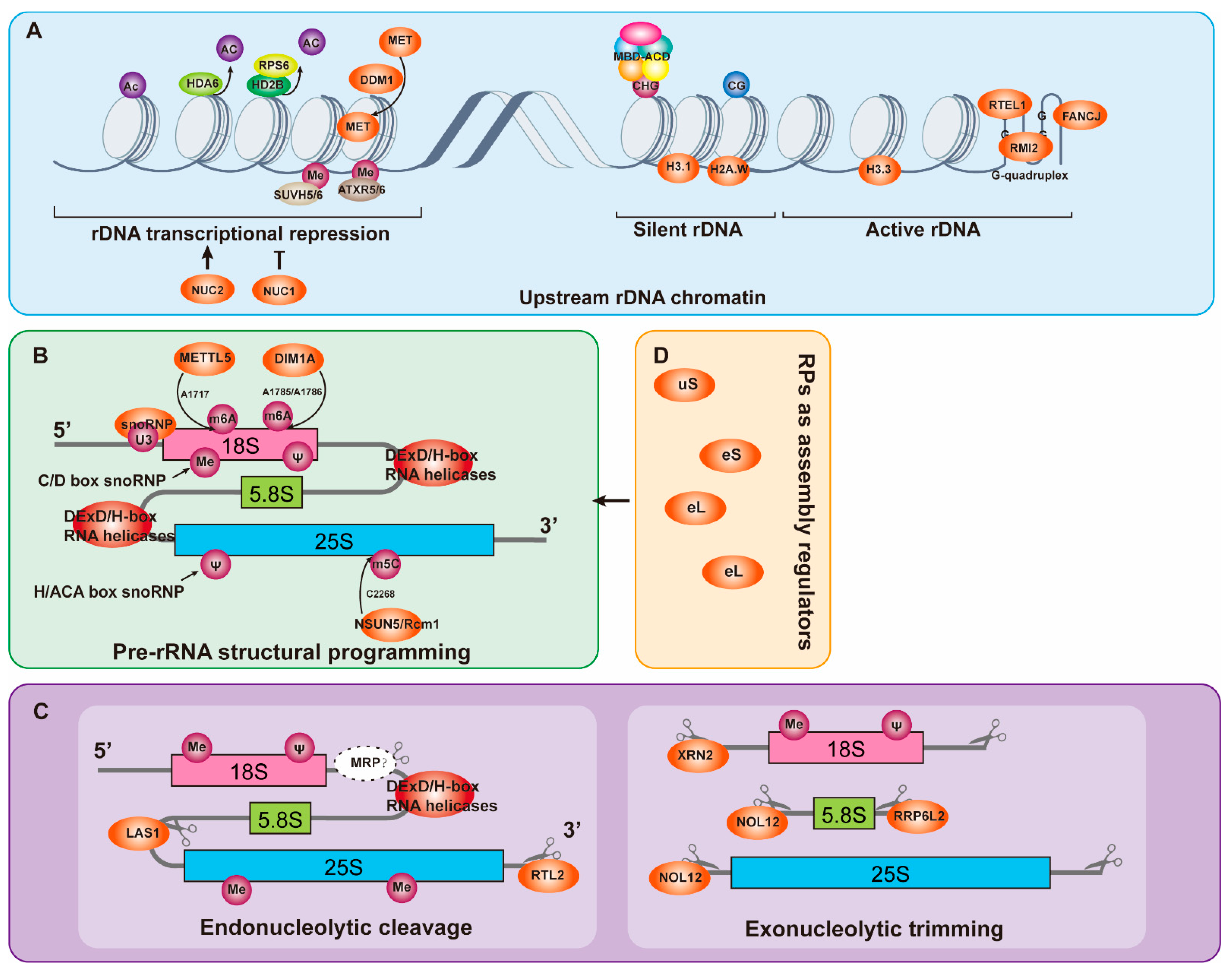 4.2. Mechanistic Network Governing Pre-rRNA Processing in Plants