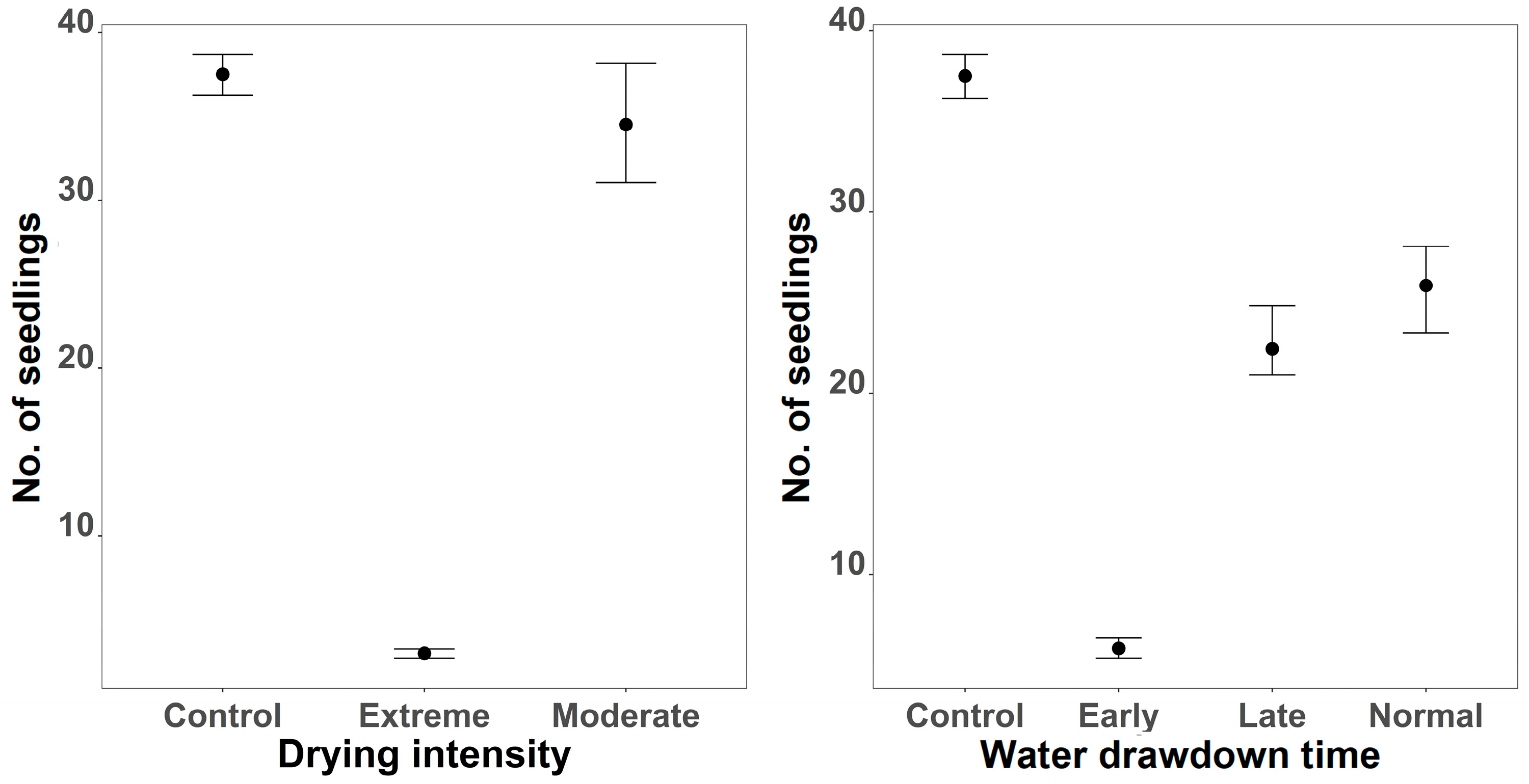 - Early drawdowns will have stronger negative effects on growth and regeneration than late drawdowns.