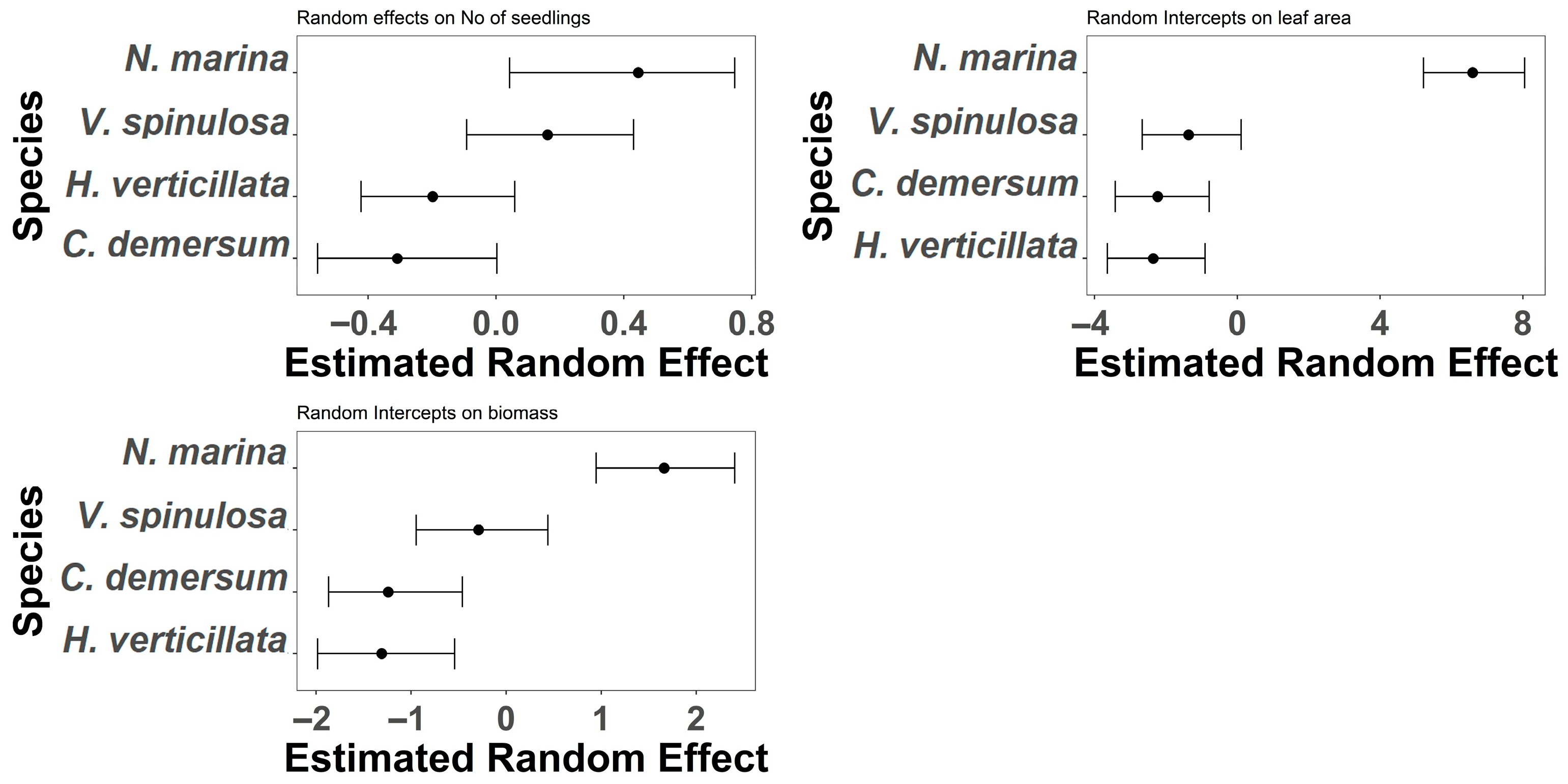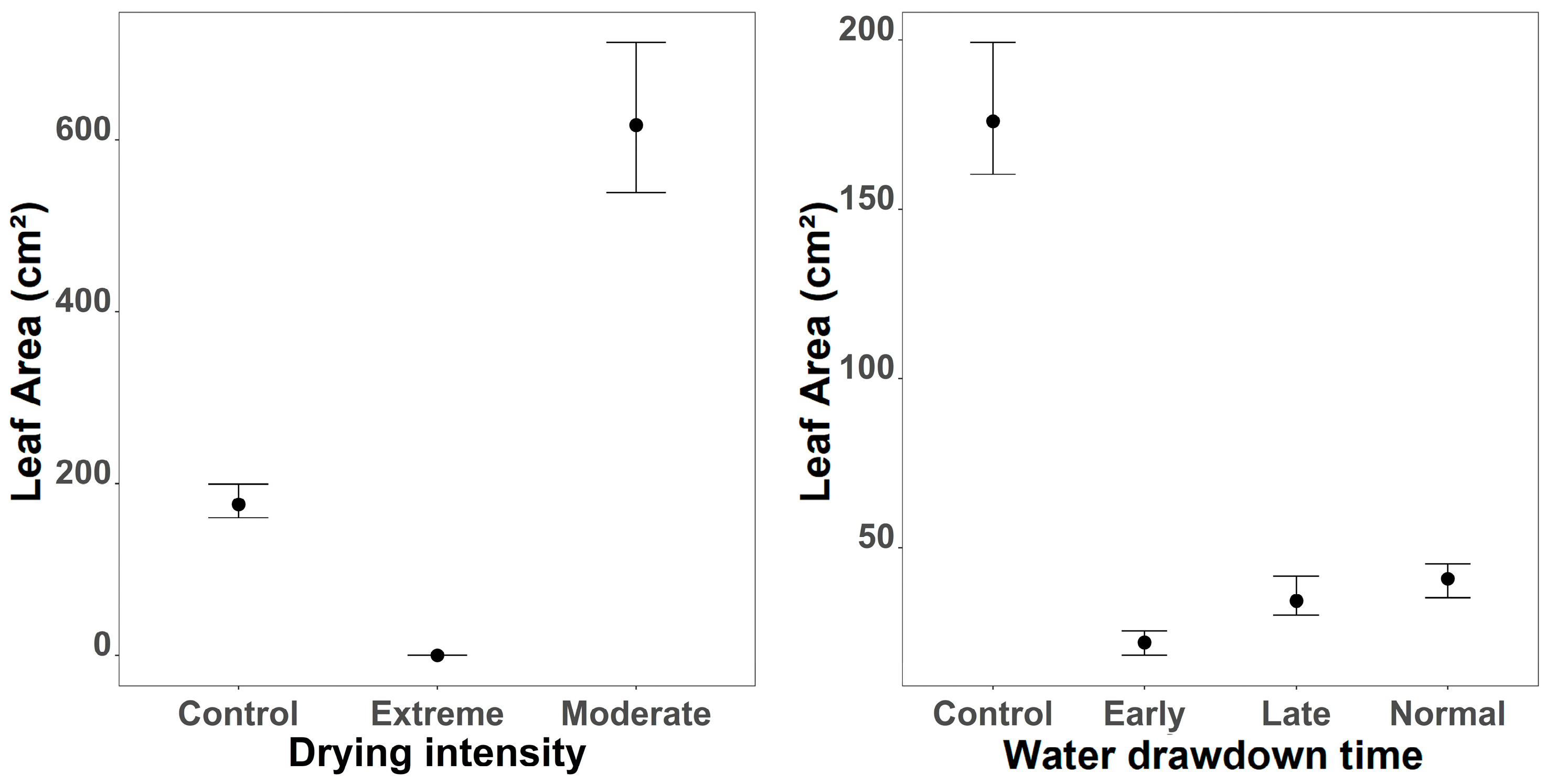 - Extreme drought intensity will severely reduce biomass, leaf area, and seedling recruitment, particularly in clonal species;