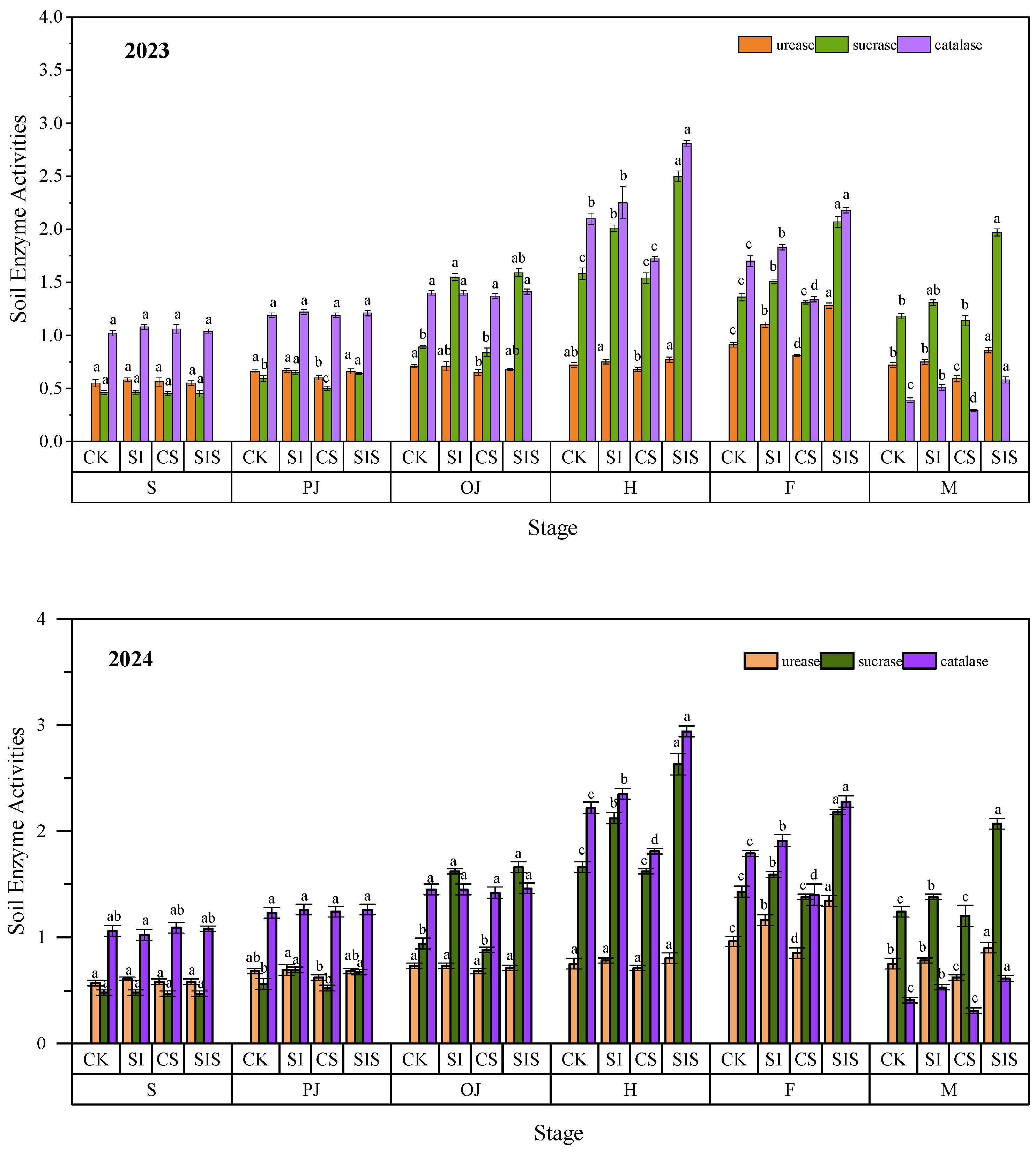 | Yield (kg·ha−1) | 4059.2 ± 107.37 d | 4702.5 ± 81.46 c | 5196.7 ± 51.96 b | 5820.0 ± 58.20 a | |