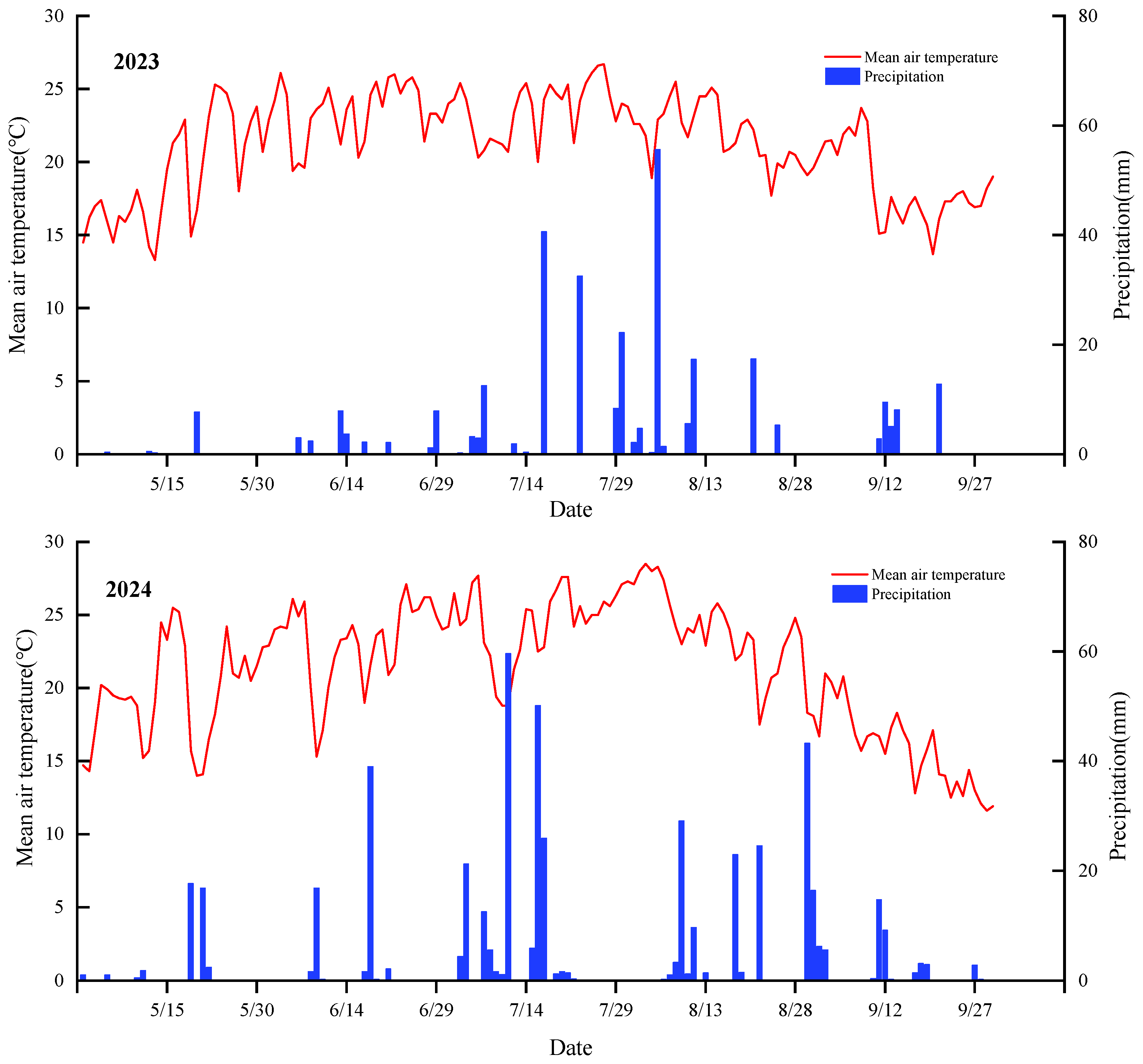 - Gao, X.L.; Zhao, N.; Lu, Y.H.; Han, X.; Yang, Z.P. Effects of Supplementary Irrigation on Soil Respiration of Millet Farmland in a Semi-Arid Region in China. Atmosphere 2022, 13, 1584. [Google Scholar] [CrossRef]