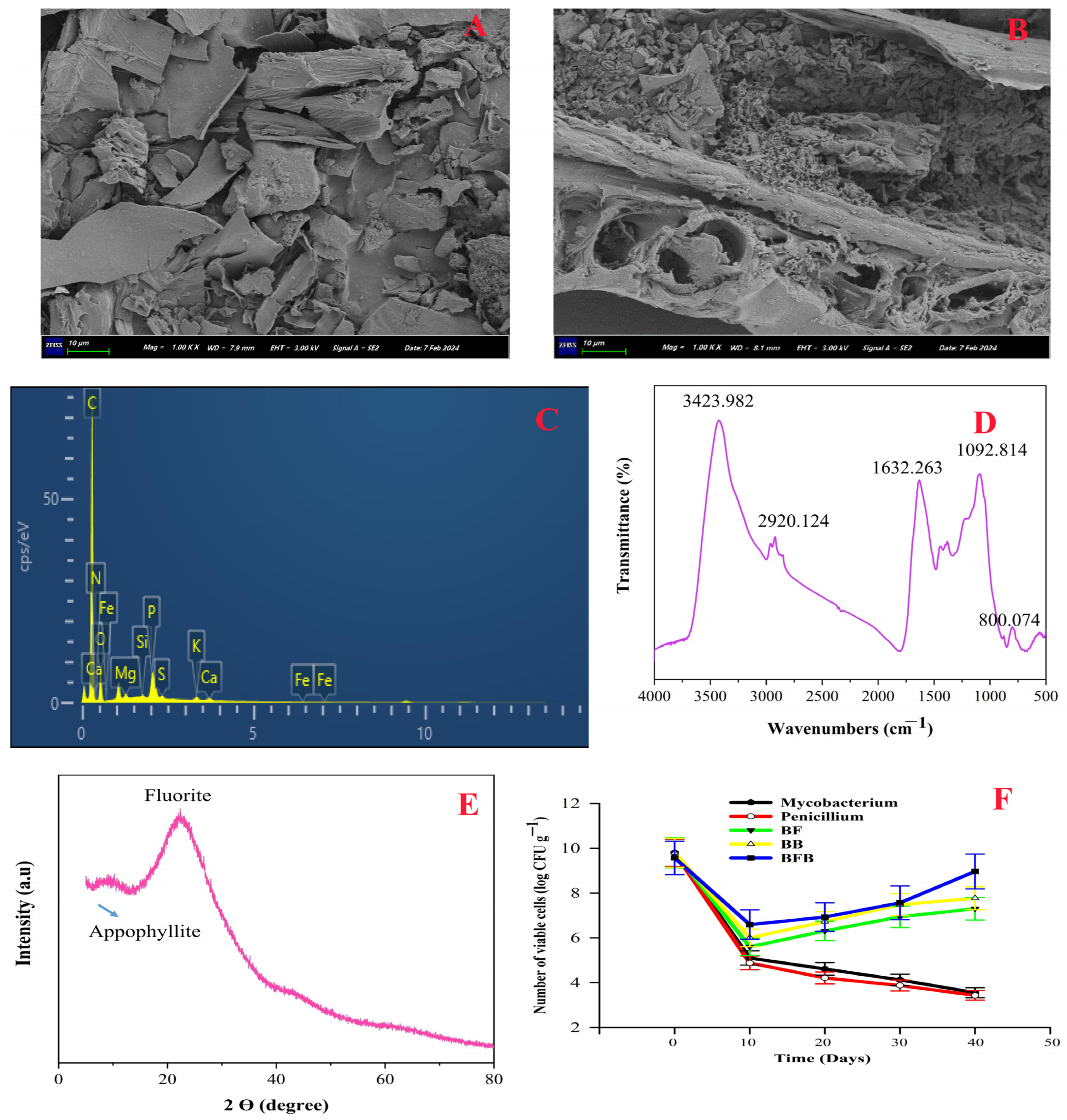4.1. Microbial Biochar Preparation and Characterization