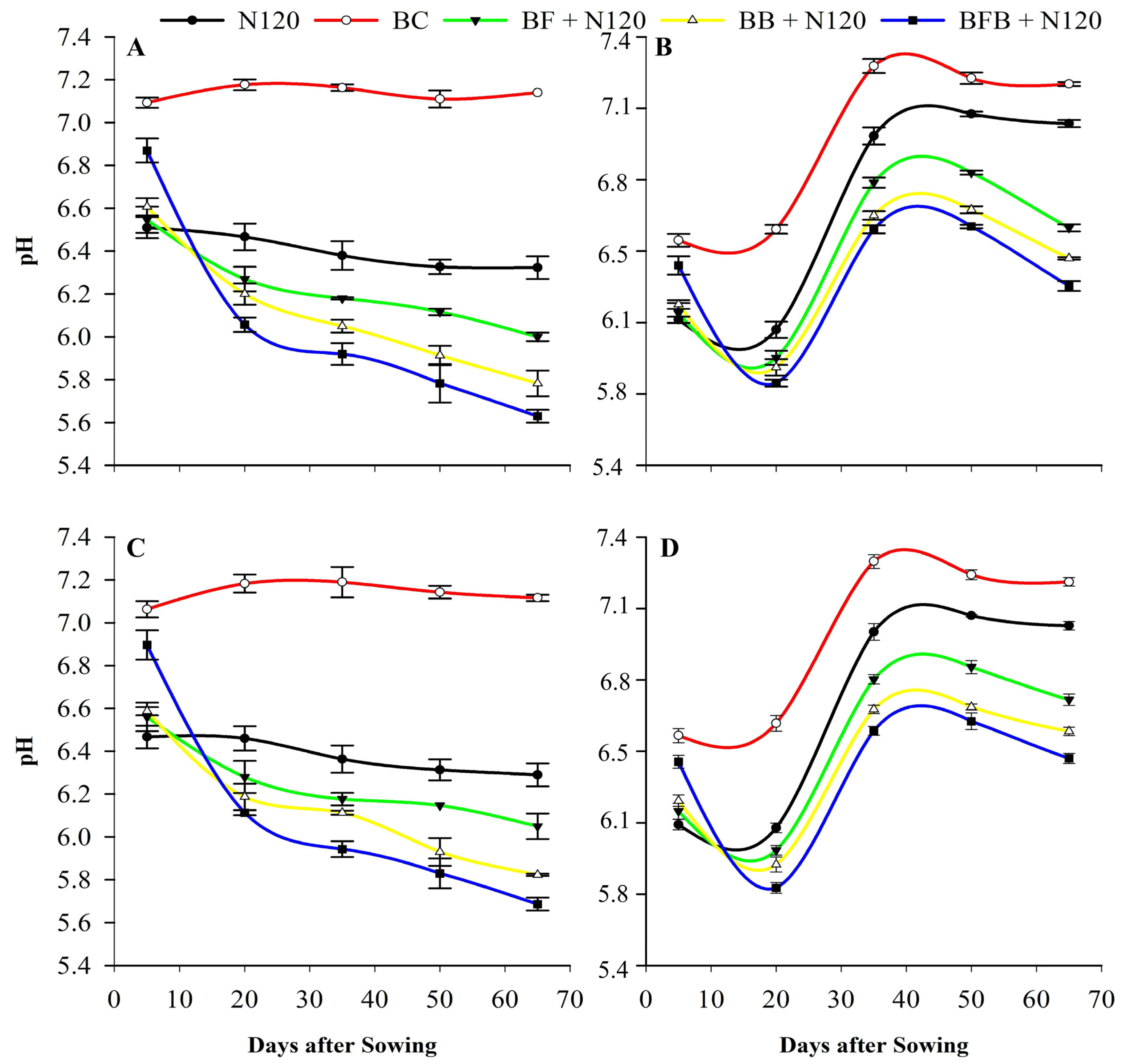 | 0.40% | BF+N120 | Fungal-Inoculated Biochar (20 t/ha) + Nitrogen (120 kg ha−1) | |