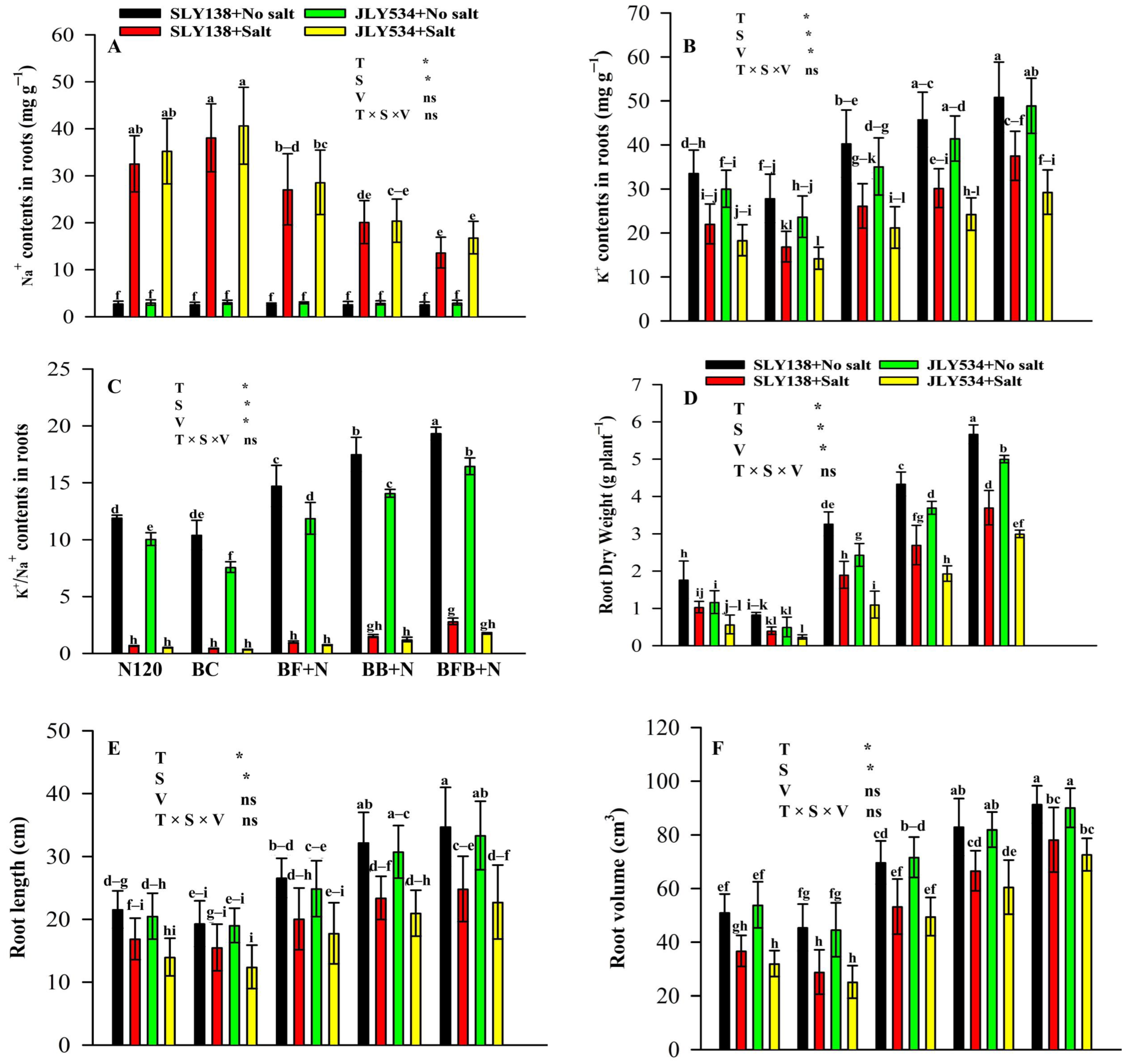 2.6. K+/Na+, Morphological and Anatomical Attributes of Roots in Rice Roots Under Saline Conditions