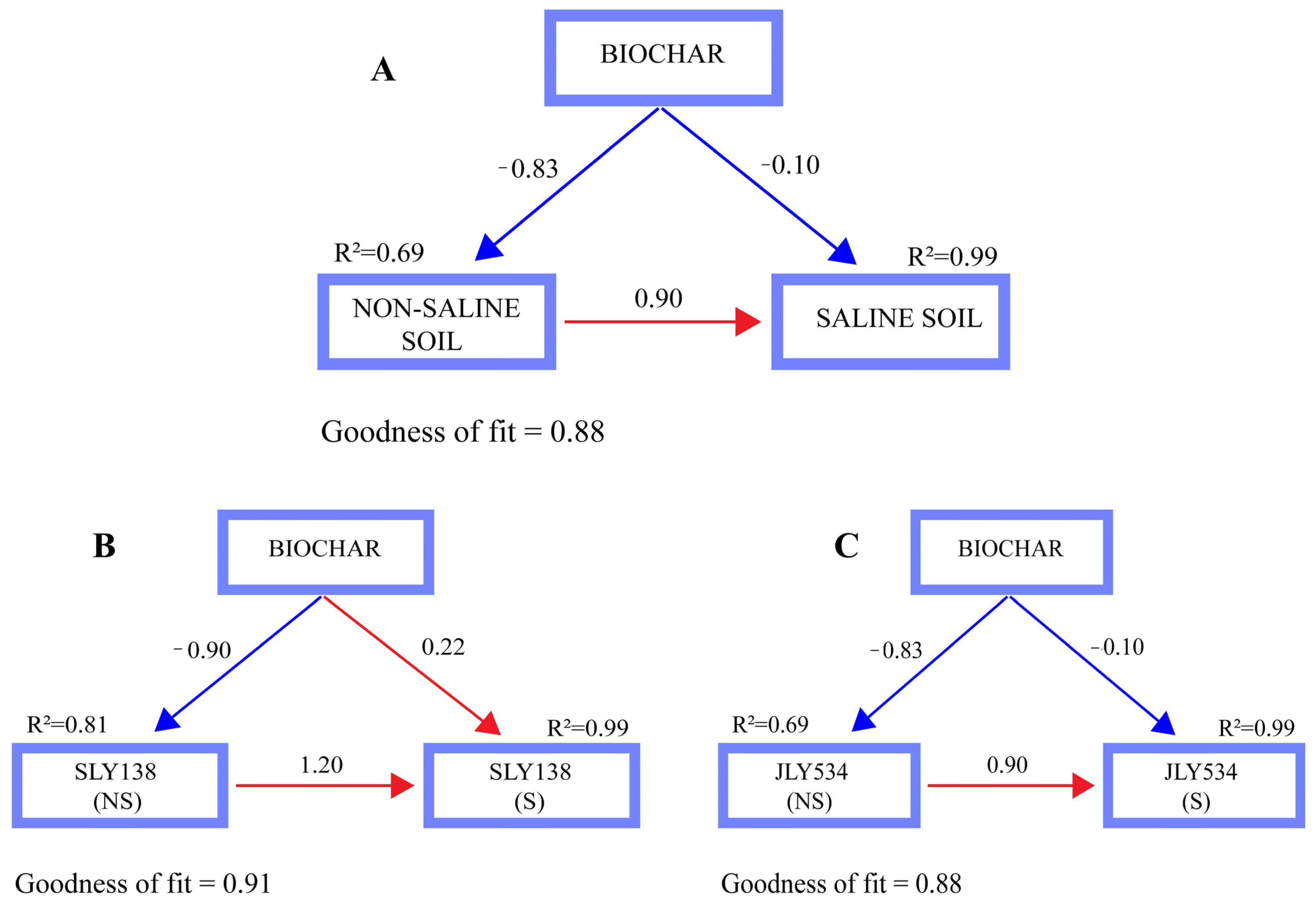 - Nitrogen fertilizer application further strengthens the effect of microbial-inoculated biochar by enhancing microbial activity and improving soil quality (soil organic matter, nitrate and ammonium nitrogen, available phosphorus, and soil enzyme activities CAT, ACP, POX, and β-D-glucosidase), thereby promoting root development under saline conditions.