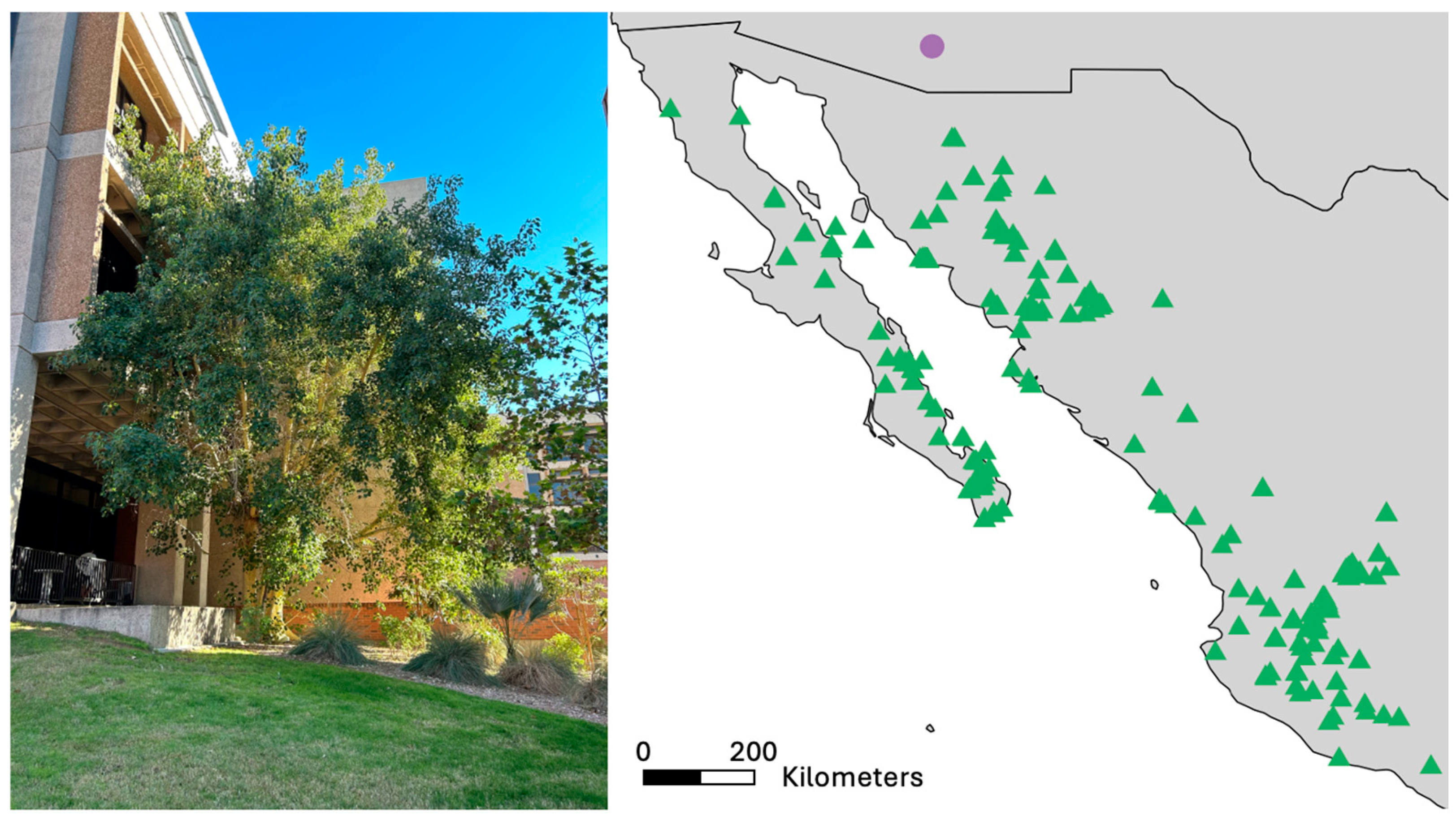 - Find Trees & Learn | UA Campus Arboretum. Ficus petiolaris. Available online: https://apps.cals.arizona.edu/arboretum/taxon.aspx?id=412 (accessed on 2 March 2026).