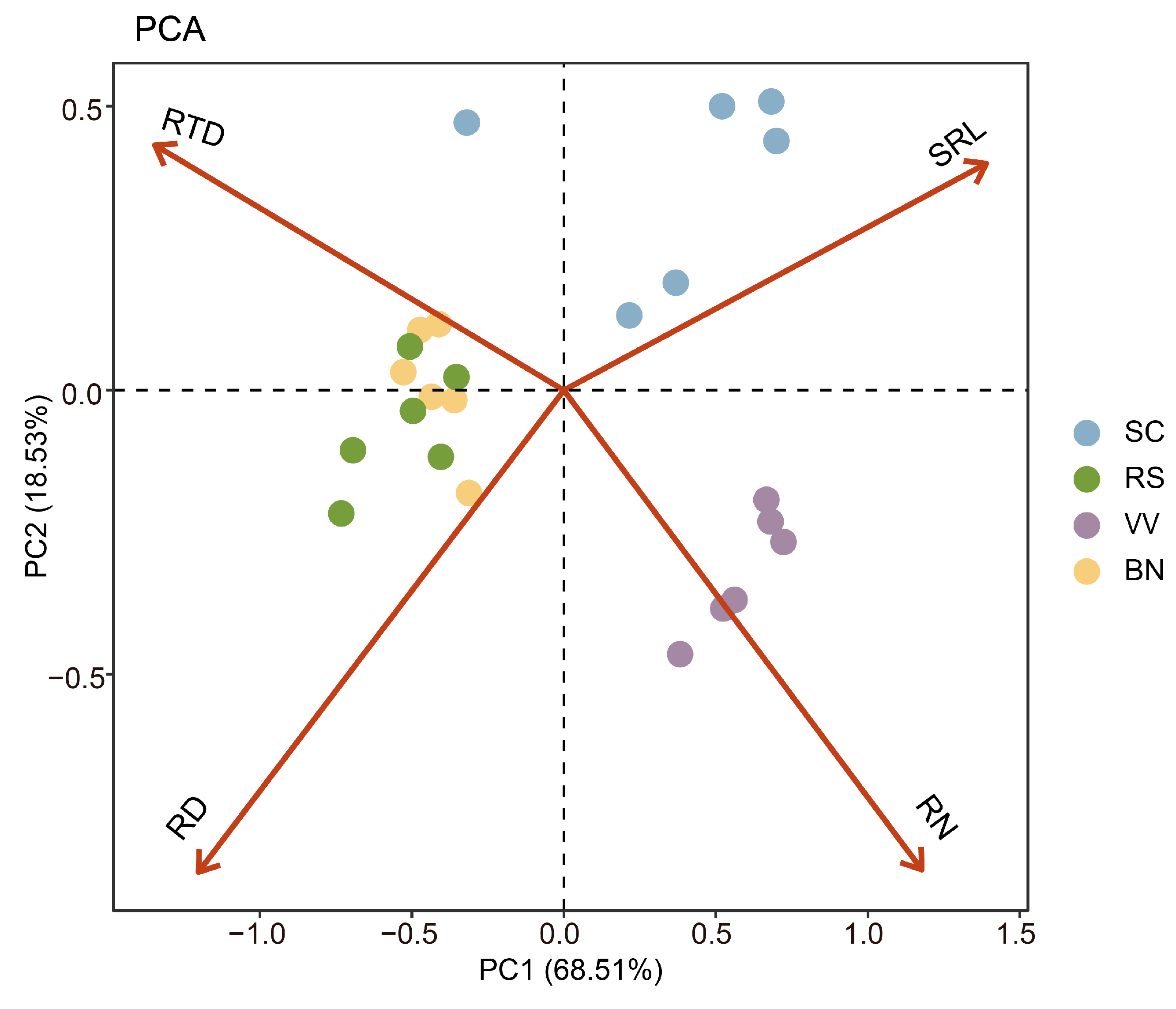 4.3. Root Trait Measurements and Soil Sampling