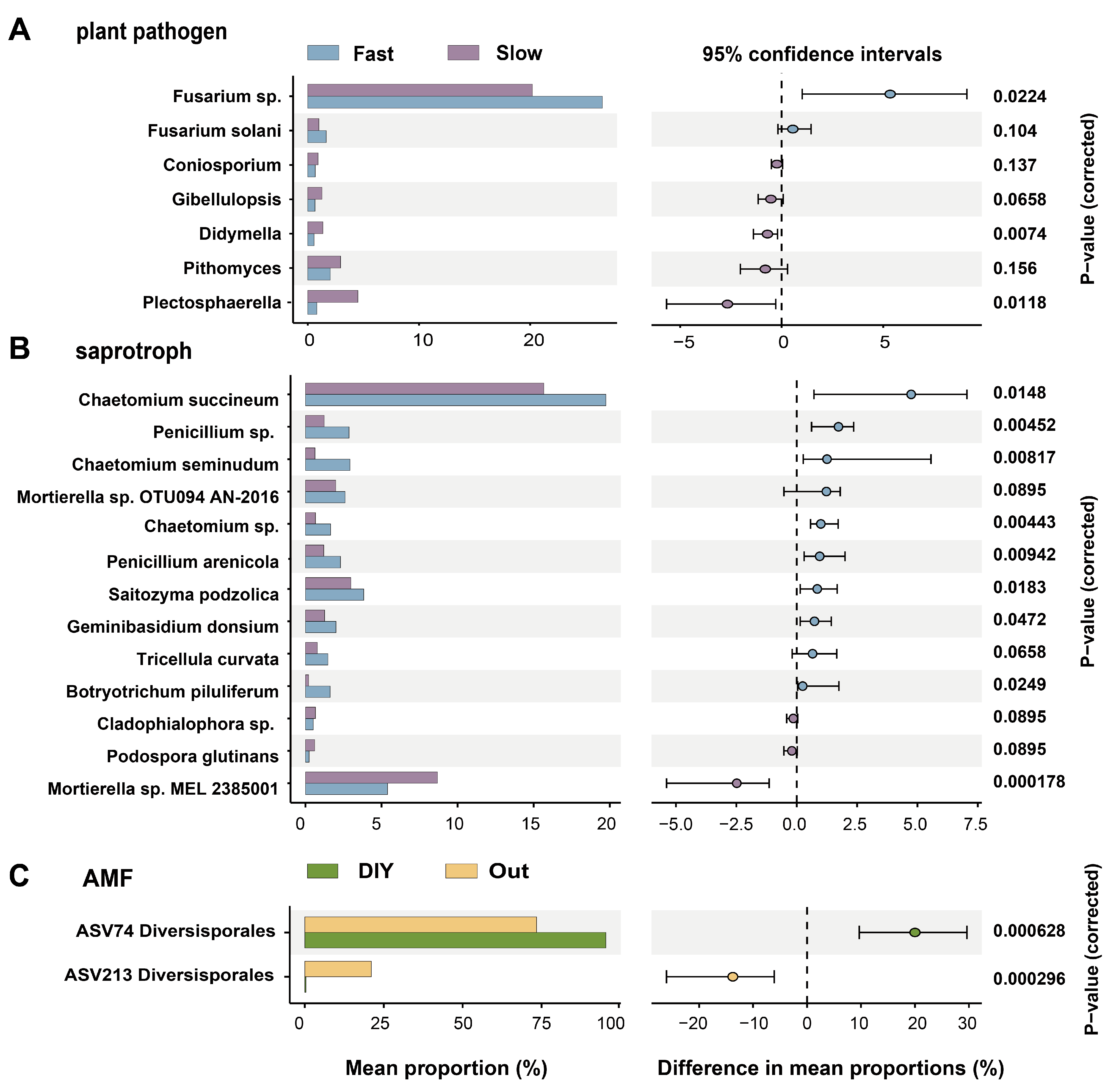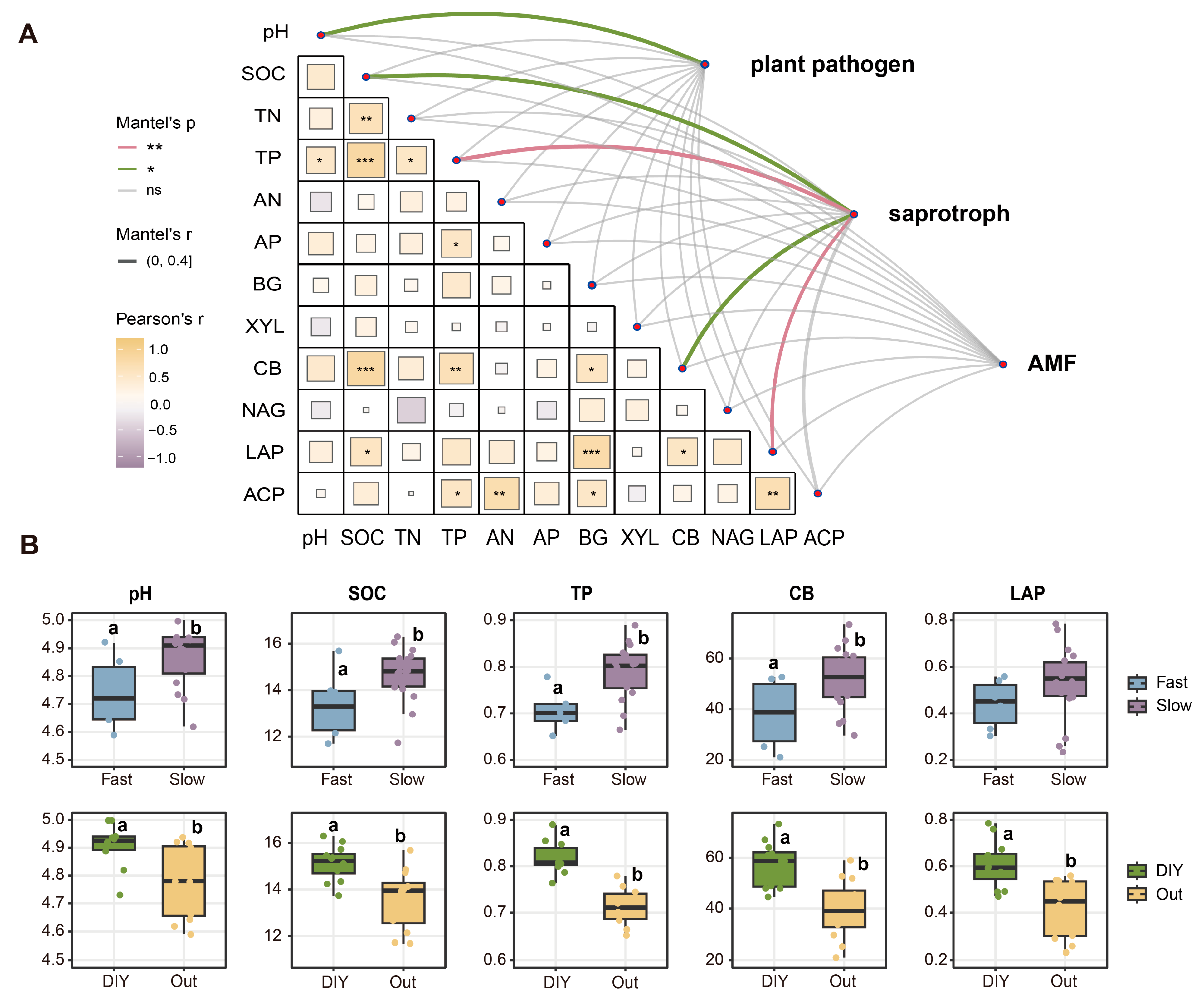- Pan, C.; Yu, W.; Sun, C.; Guo, J.; Yu, Y.; Li, X. Saprotrophic Fungi Buffer the Adverse Effects of Soil Acidification on the Soil Nutrient Supply Ability of Chinese Fir (Cunninghamia lanceolata) Plantations. Eur. J. Soil. Biol. 2023, 114, 103462. [Google Scholar] [CrossRef]