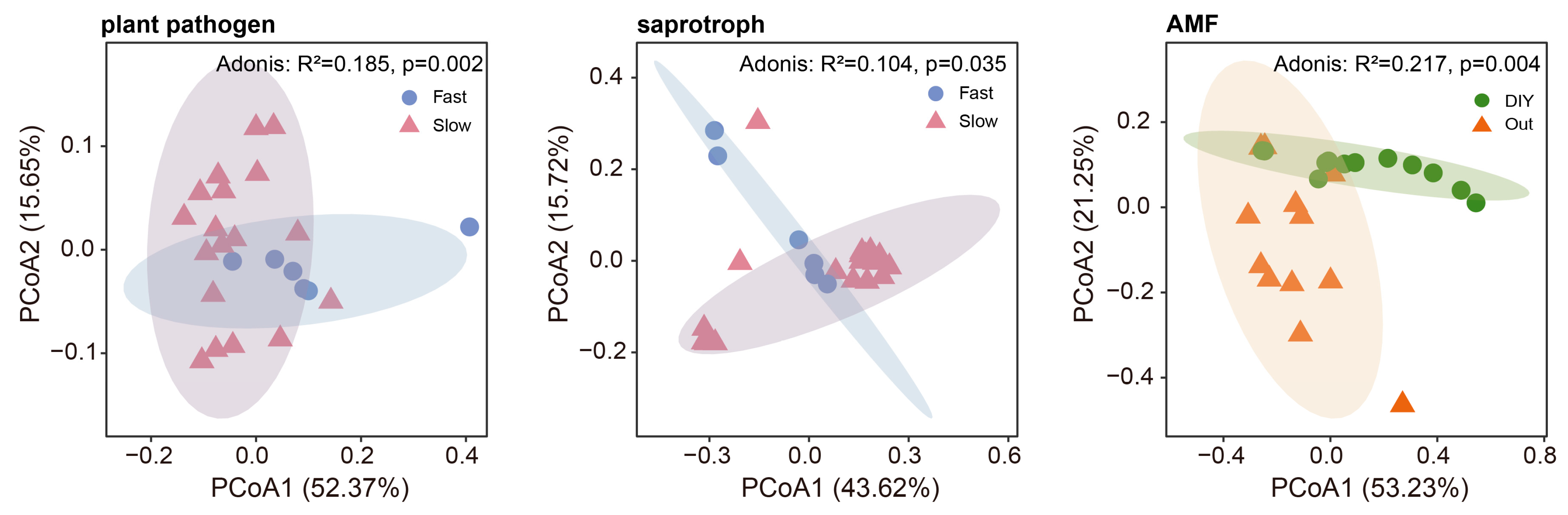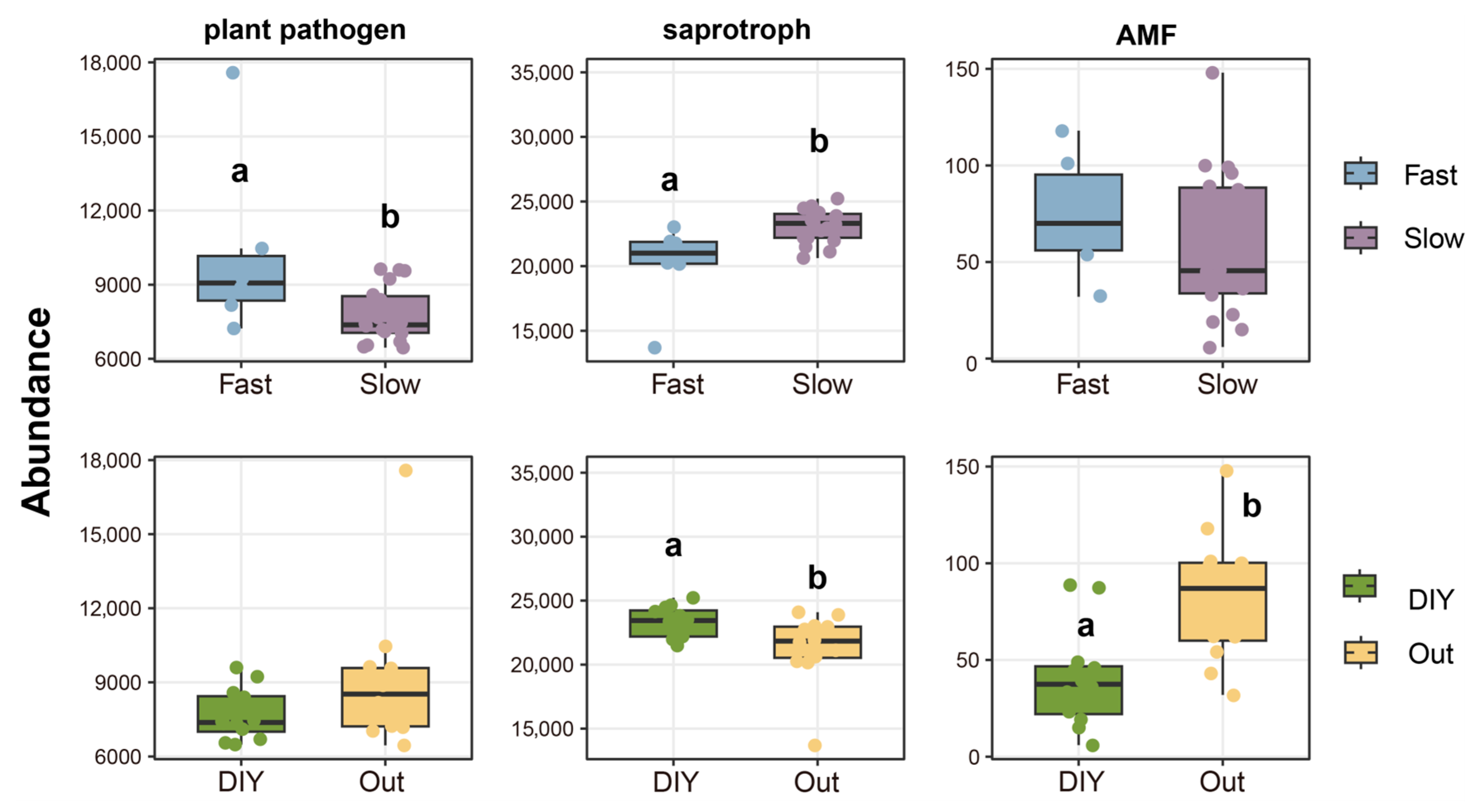 2.3. Responses of Fungal Functional Groups to Different Root Trait Strategies