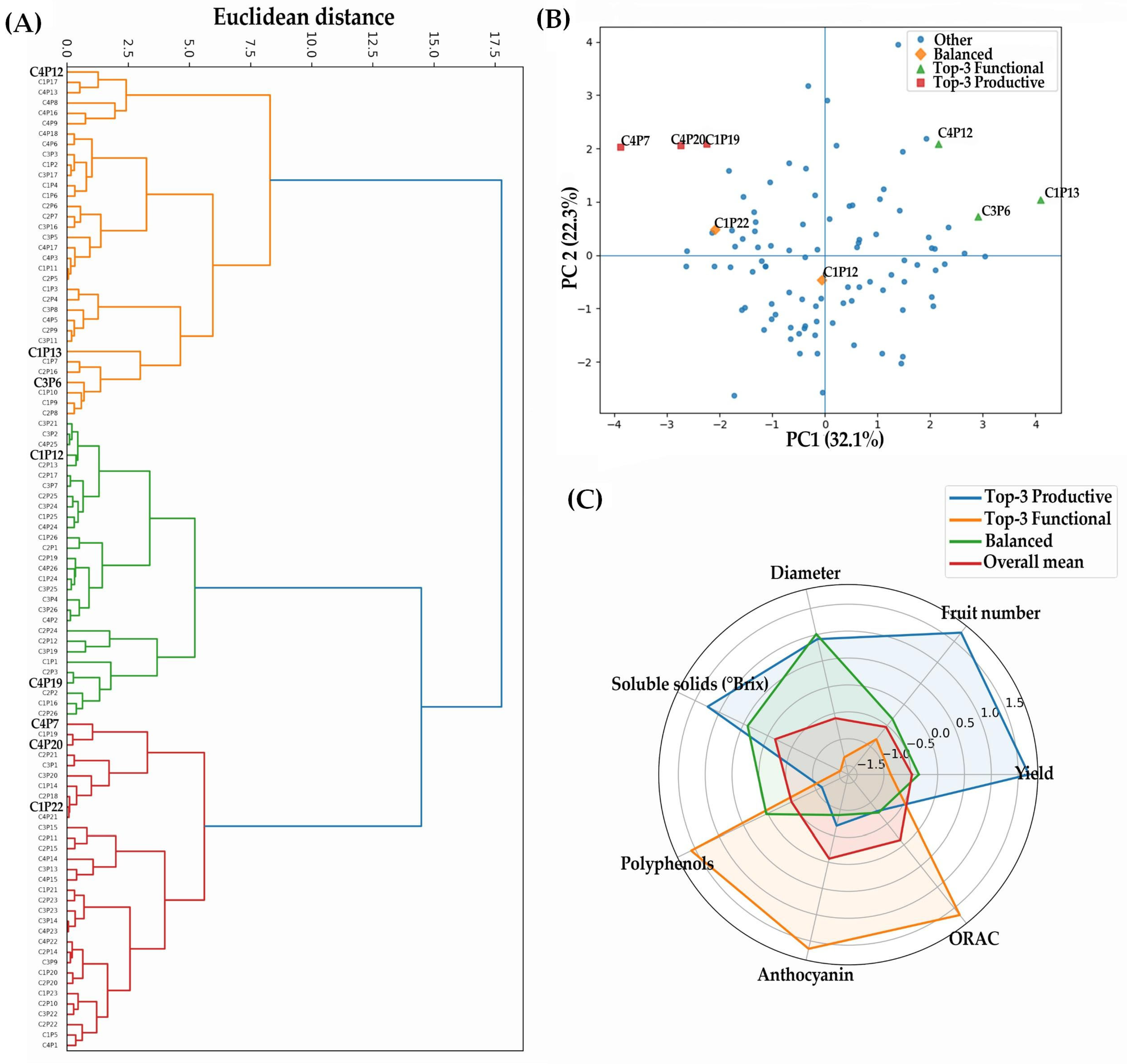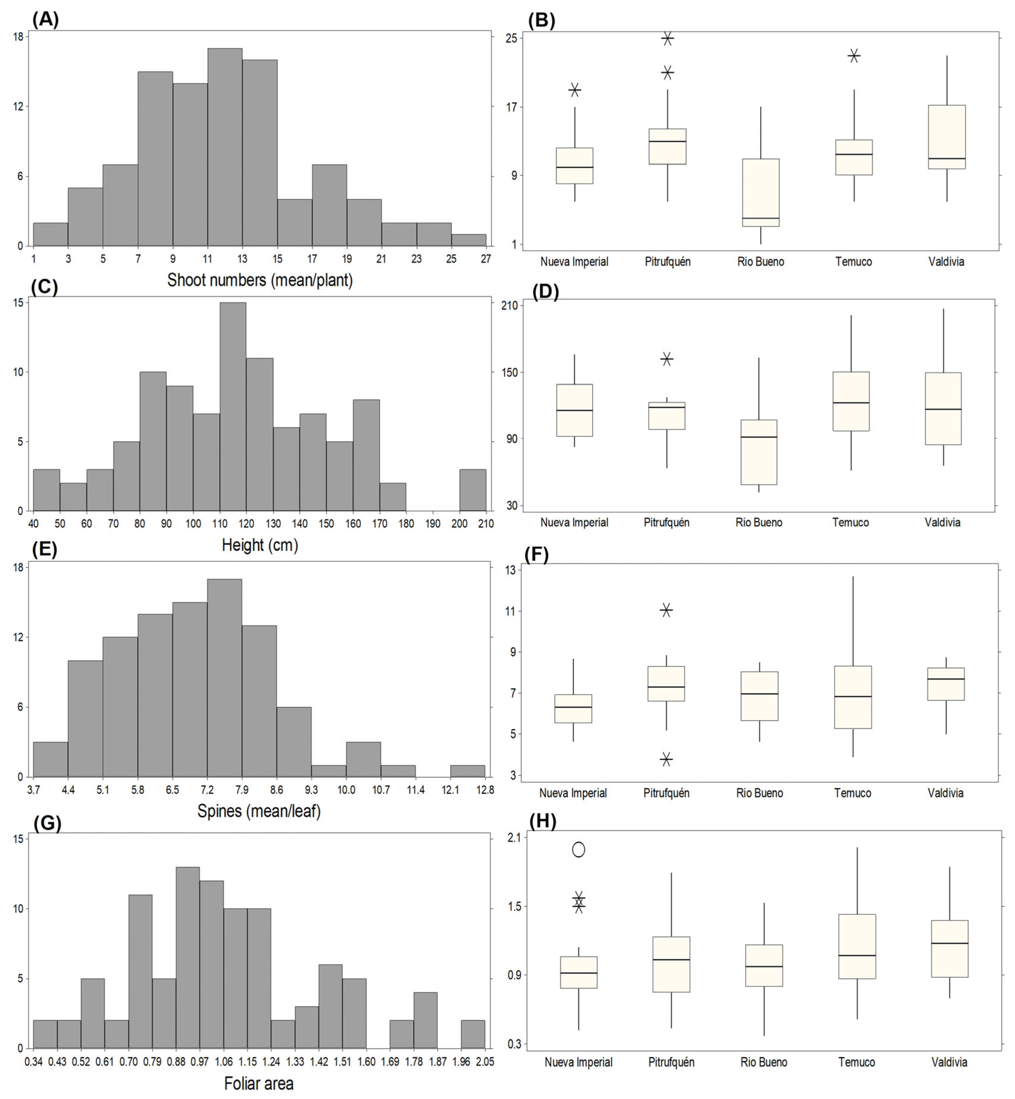 | Shoot Numbers | Height | Foliar Area | Spines | Yield | Fruit Number | Diameter | Soluble Solids | Polyphenols | Anthocyanins | ORAC | |