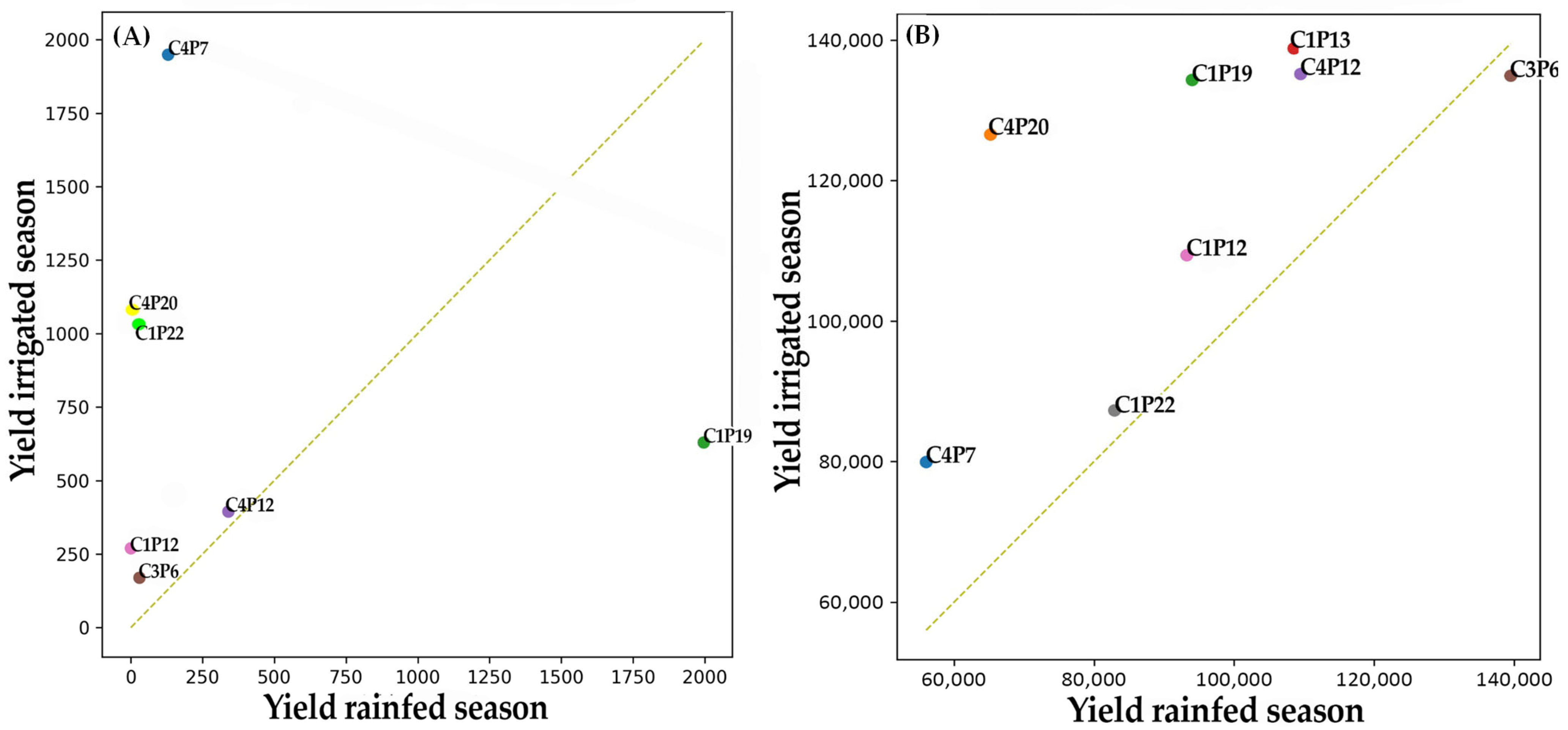 2.2.2. Evaluation of Productive Traits Under Rainfed Conditions