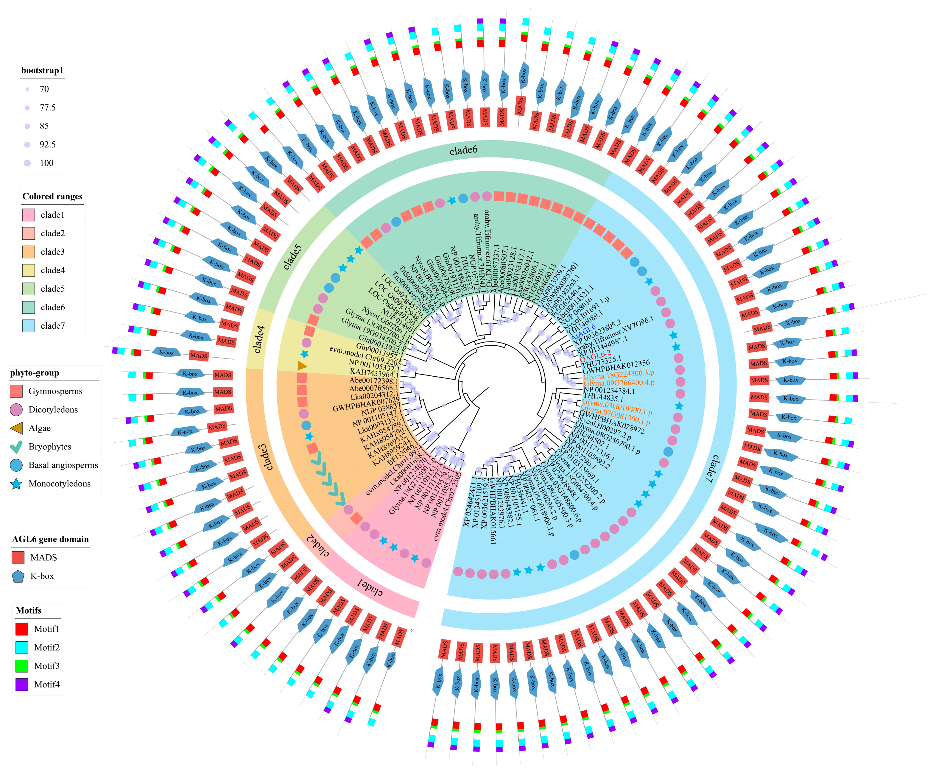 GmAGL6a–d) in soybean, each characterized by the co-occurrence of the MADS-box and K-box domains, provides a modern genomic perspective on a lineage with deep evolutionary roots. Members of the AGL6 subfamily belong to the MIKC