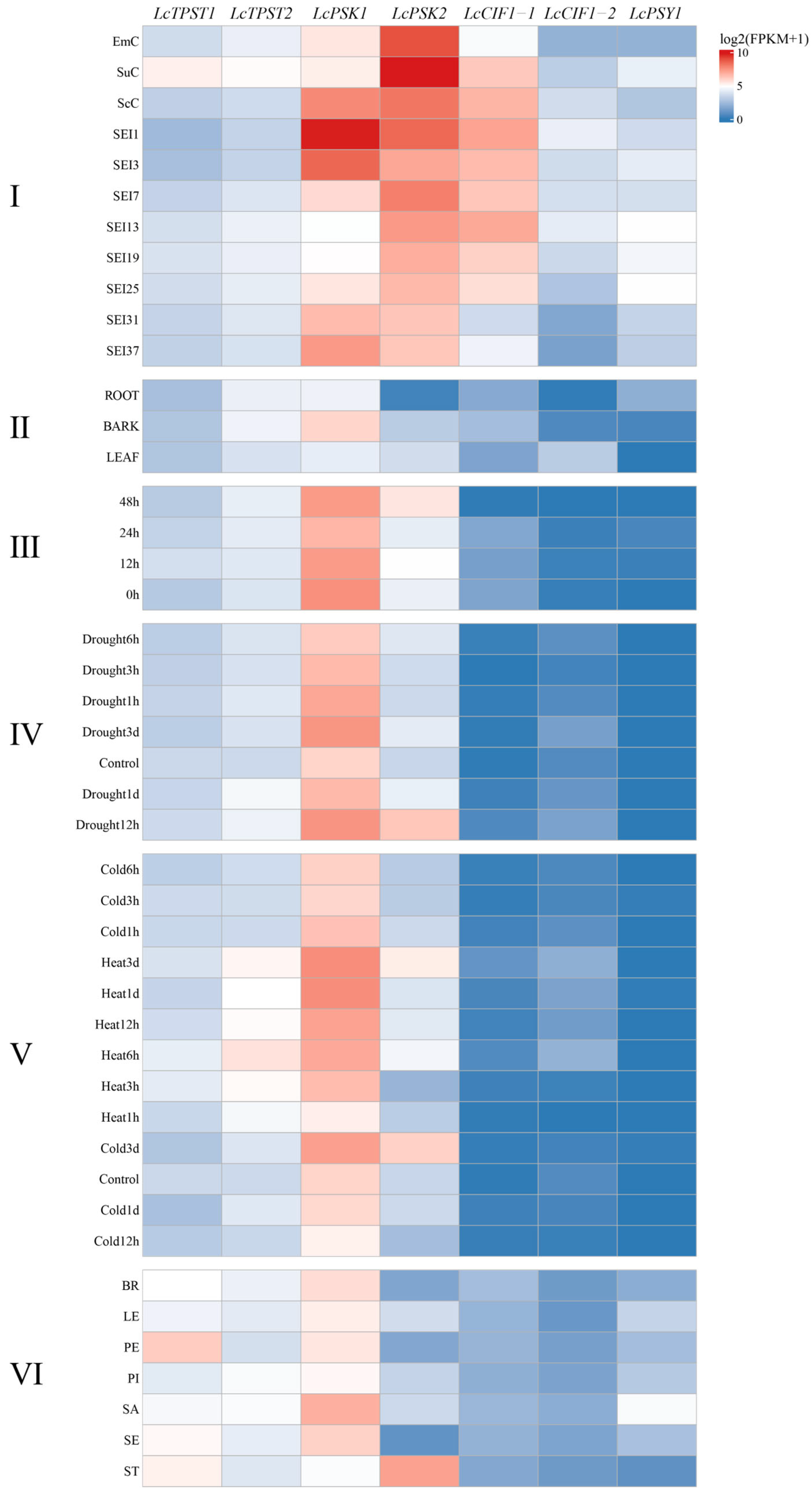 2.7. Expression Patterns of Gene Family Members in L. chinense