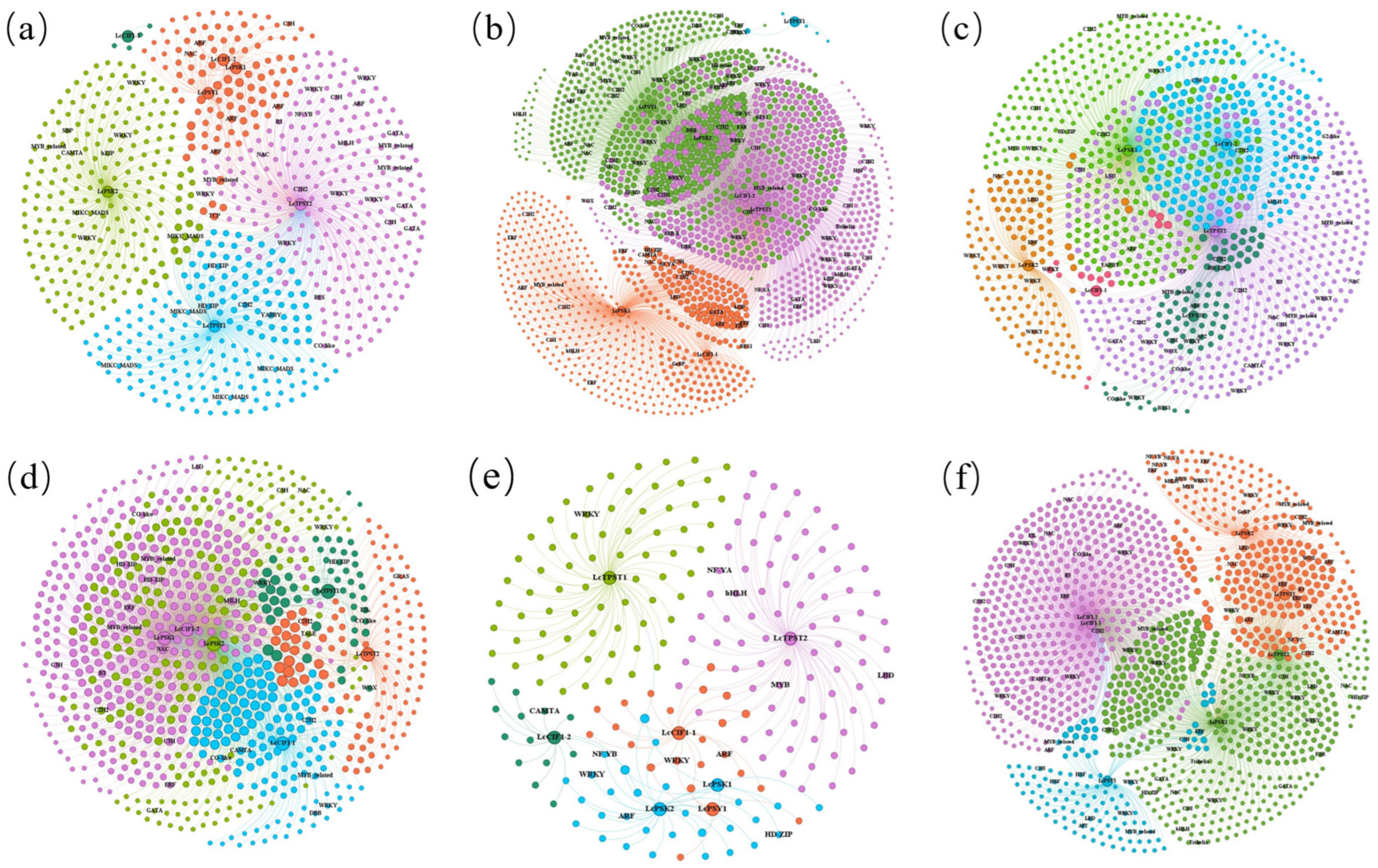 2.8. Co-Expression Networks and Transcription Factors