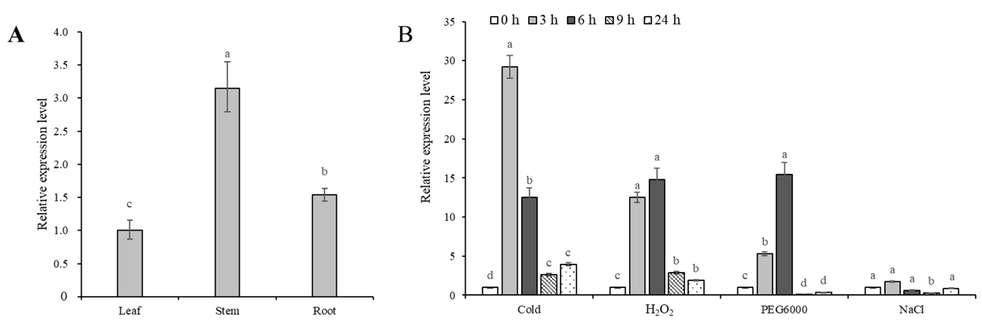 3.2. Analysis of IbDREB1d Expression Characteristics