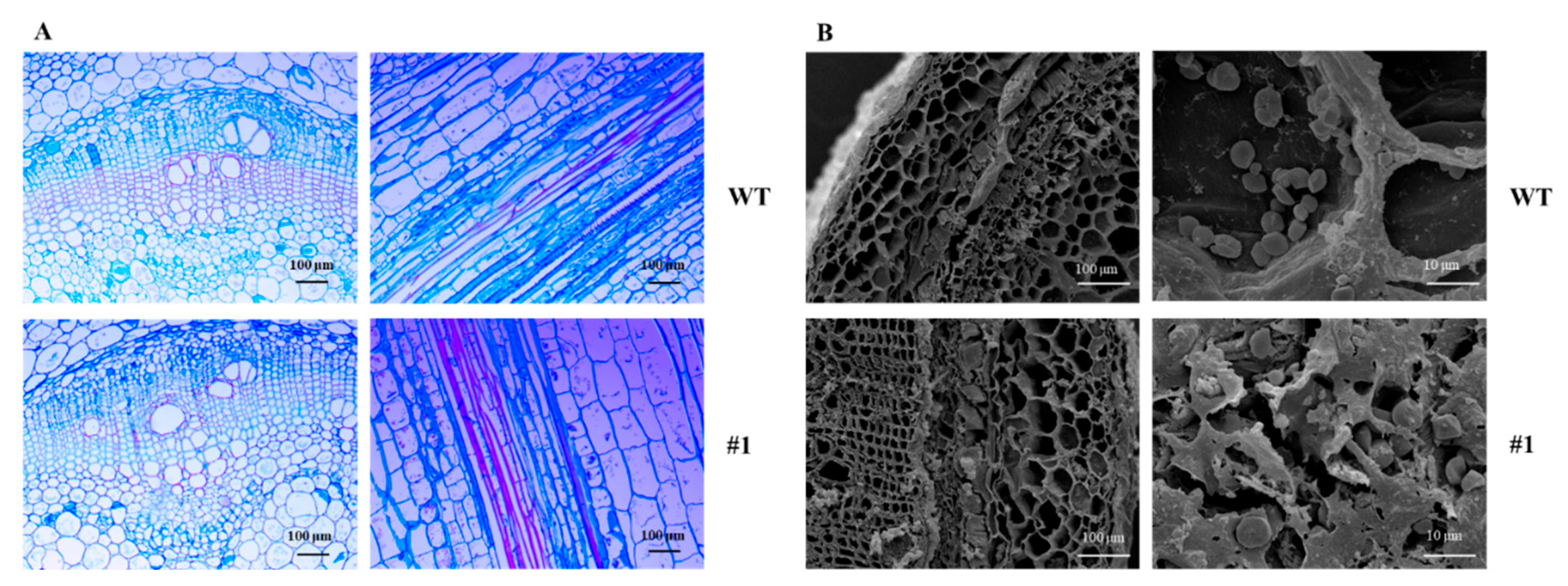 3.5. Microscopic Structure Observation of Transgenic Plants