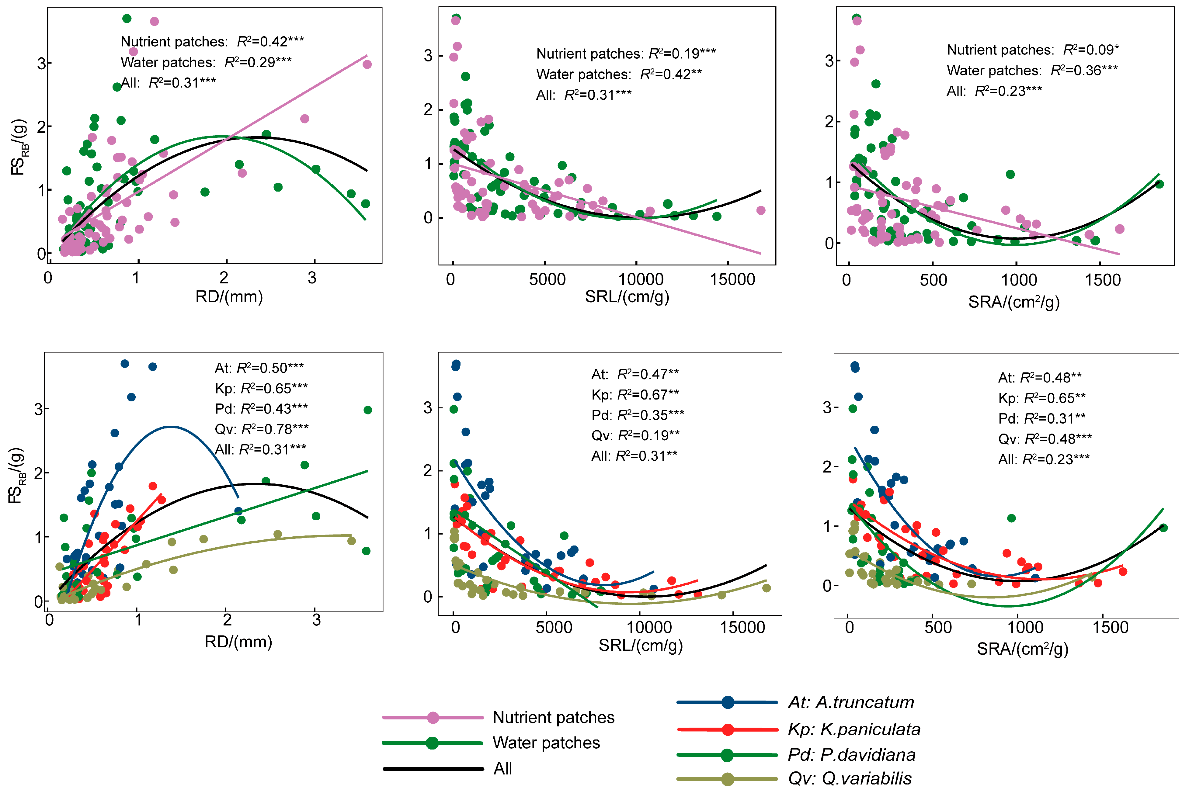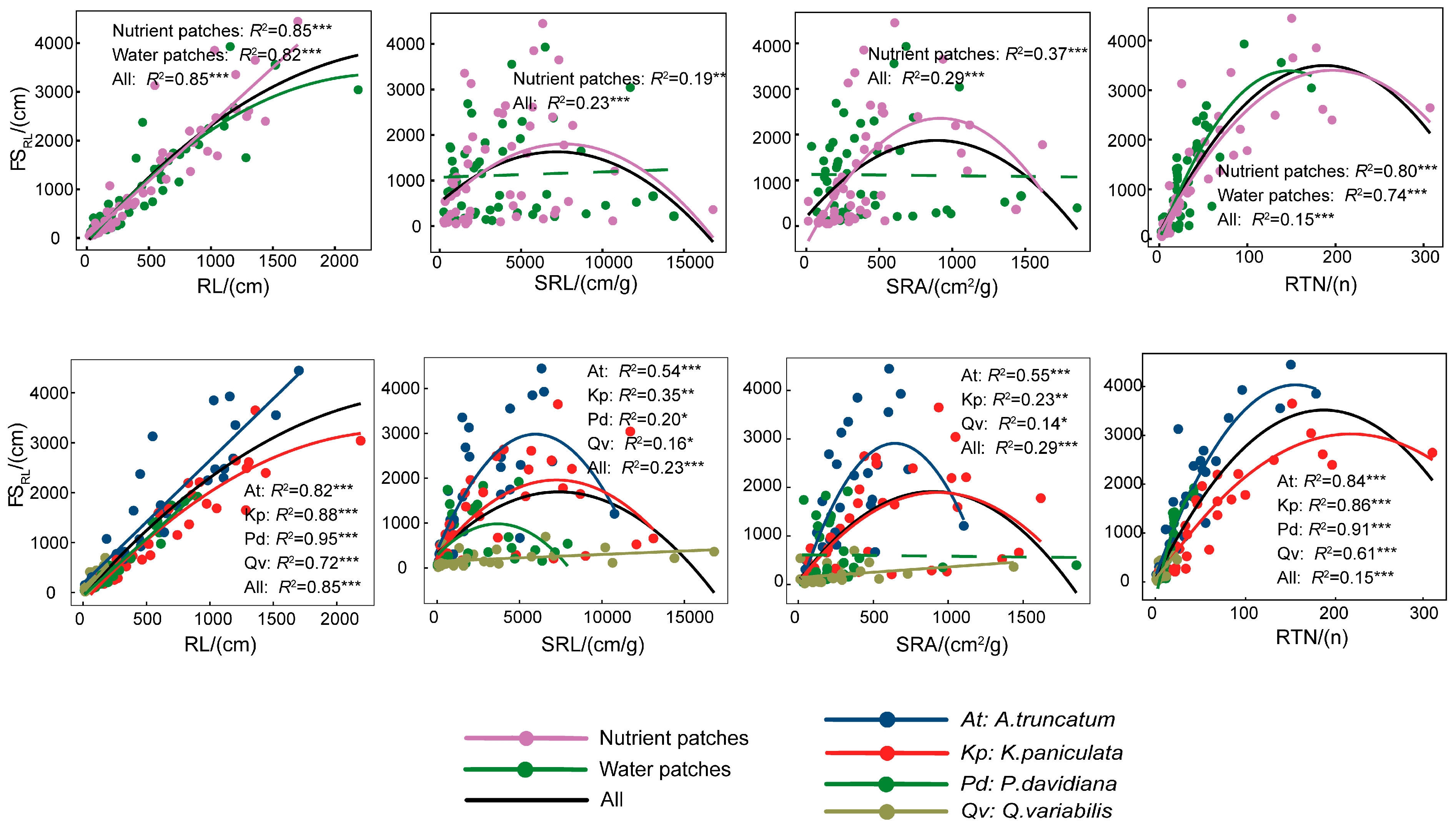 2.3. Relationships Between Root Traits and Root Foraging Traits