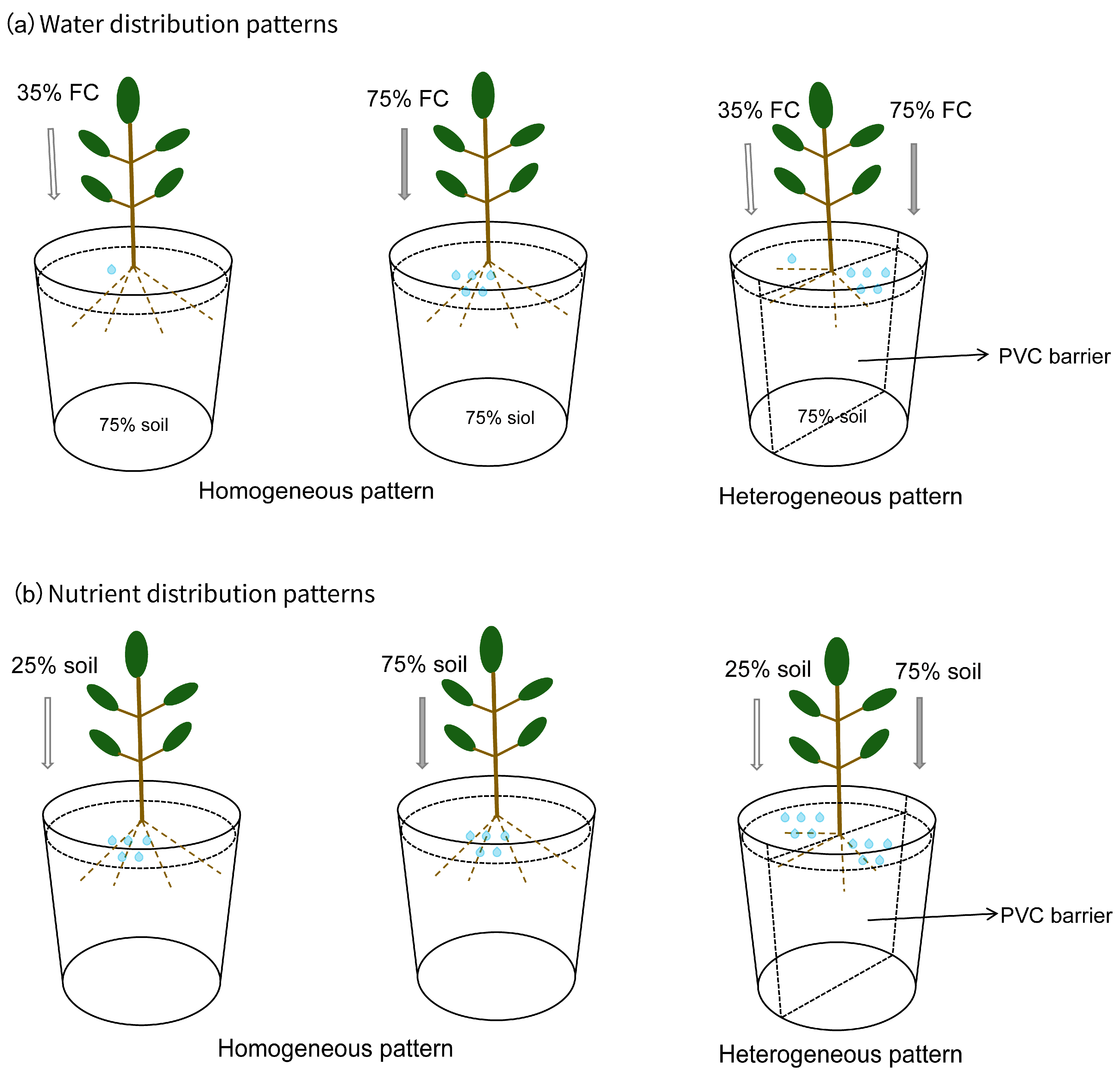 - Wang, P.; Mou, P.; Hu, L.; Hu, S. Effects of Nutrient Heterogeneity on Root Foraging and Plant Growth at the Individual and Community Level. J. Exp. Bot. 2022, 73, 7503–7515. [Google Scholar] [CrossRef]