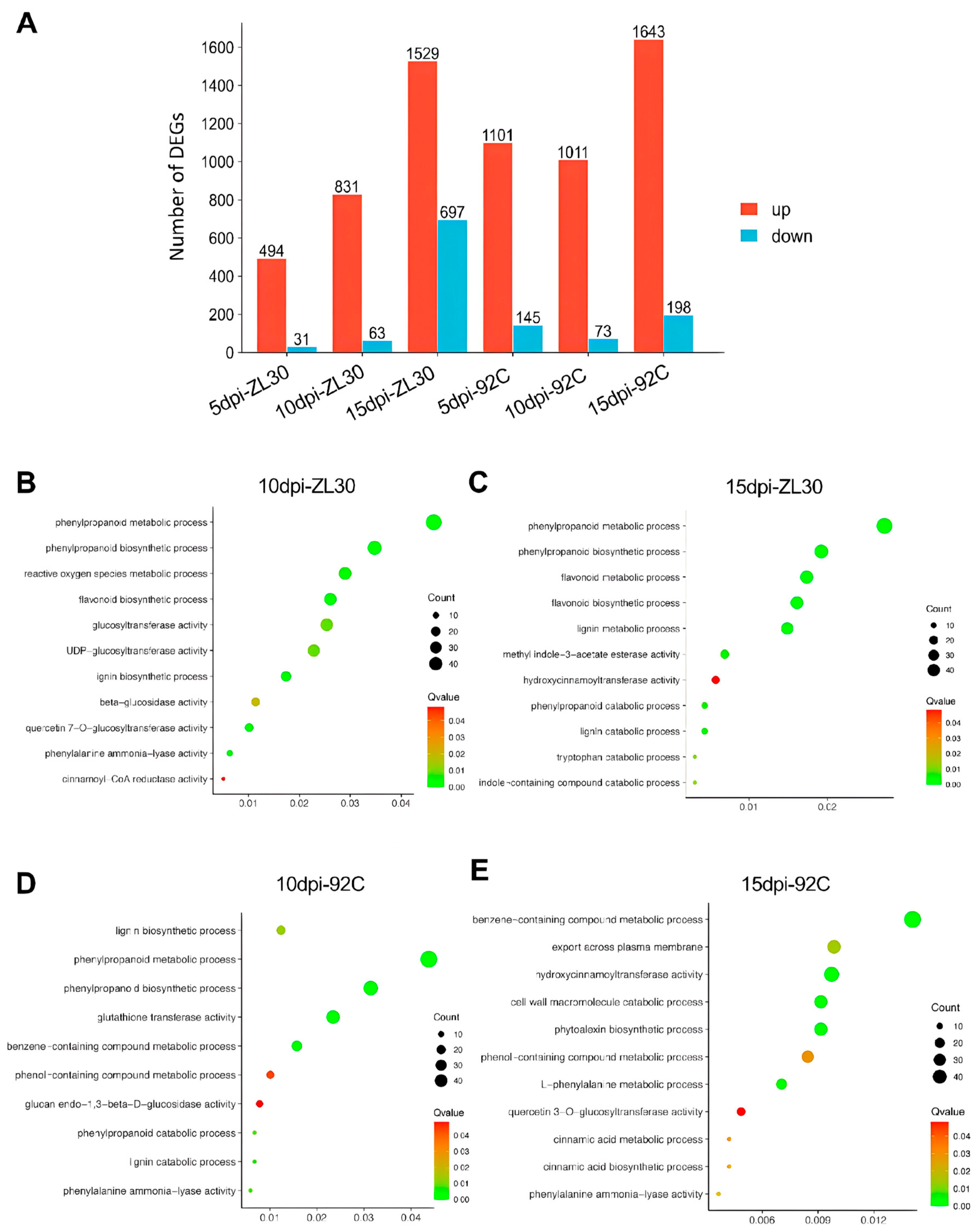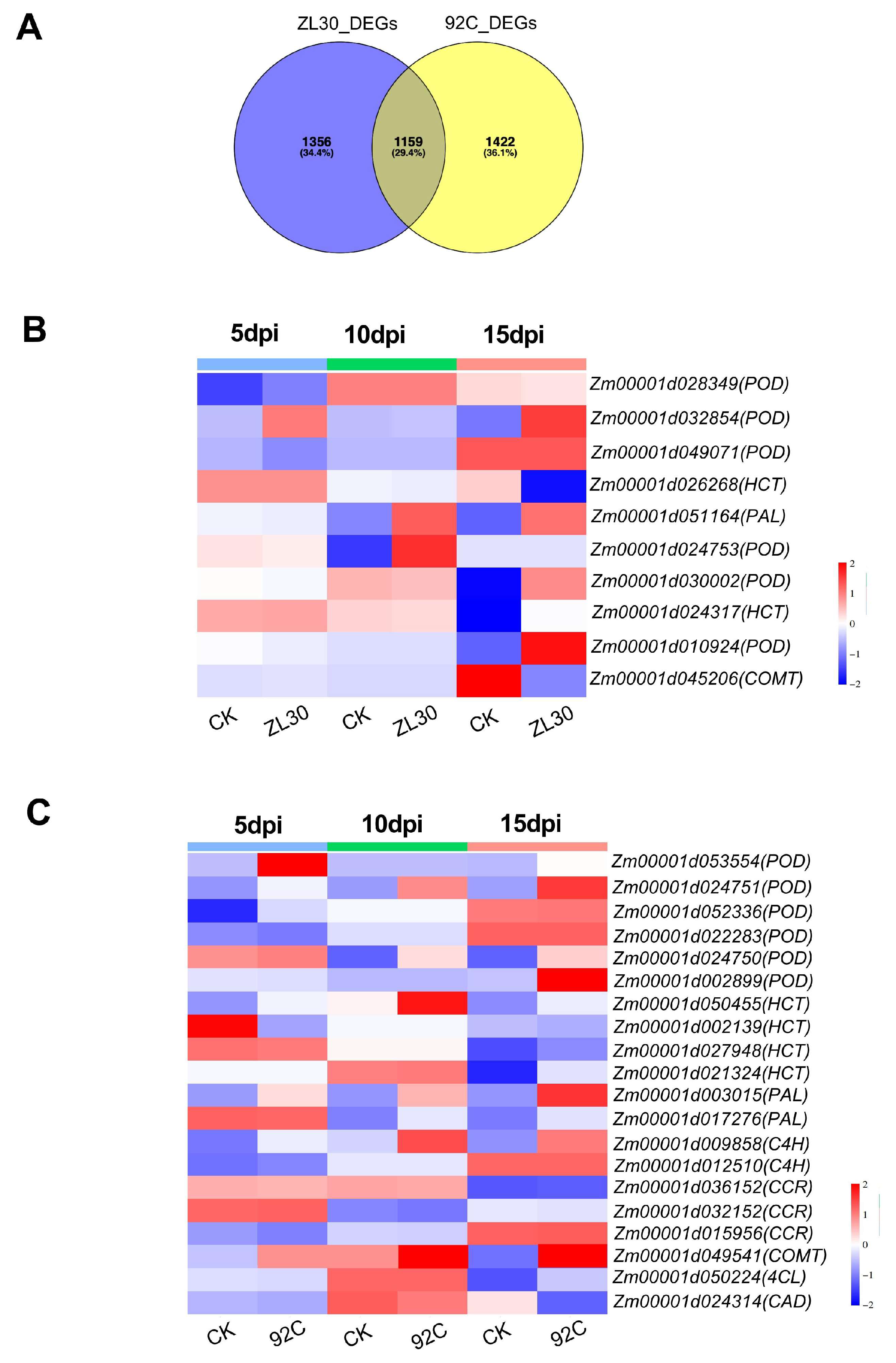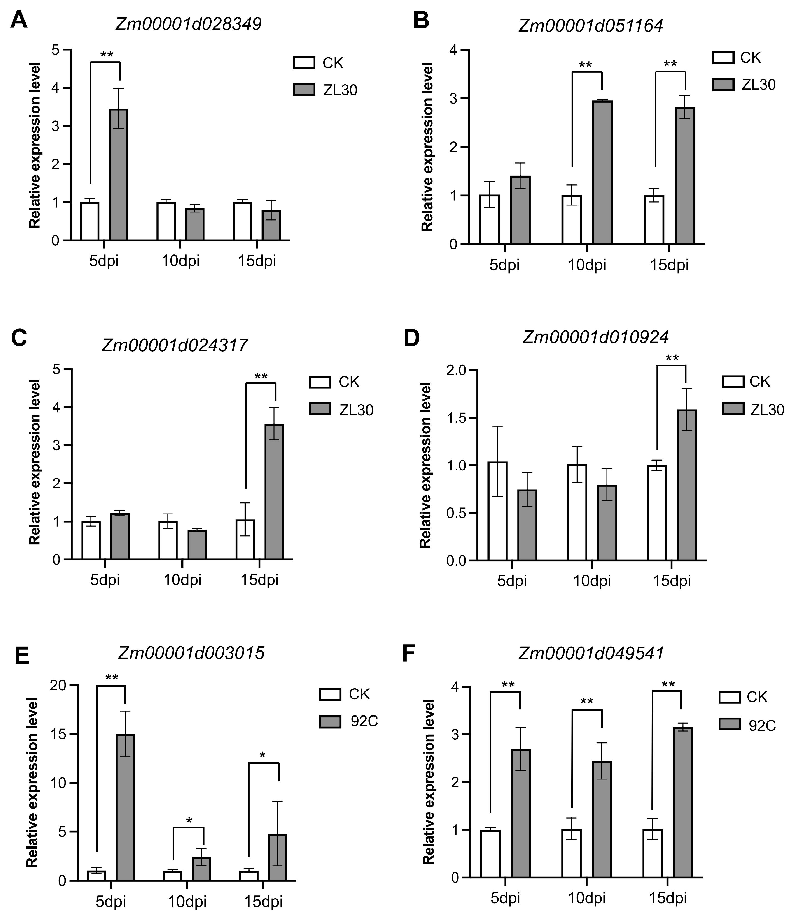 2.2. Transcriptome Profiling of ZL30 and 92C in Response to F. verticillioides
