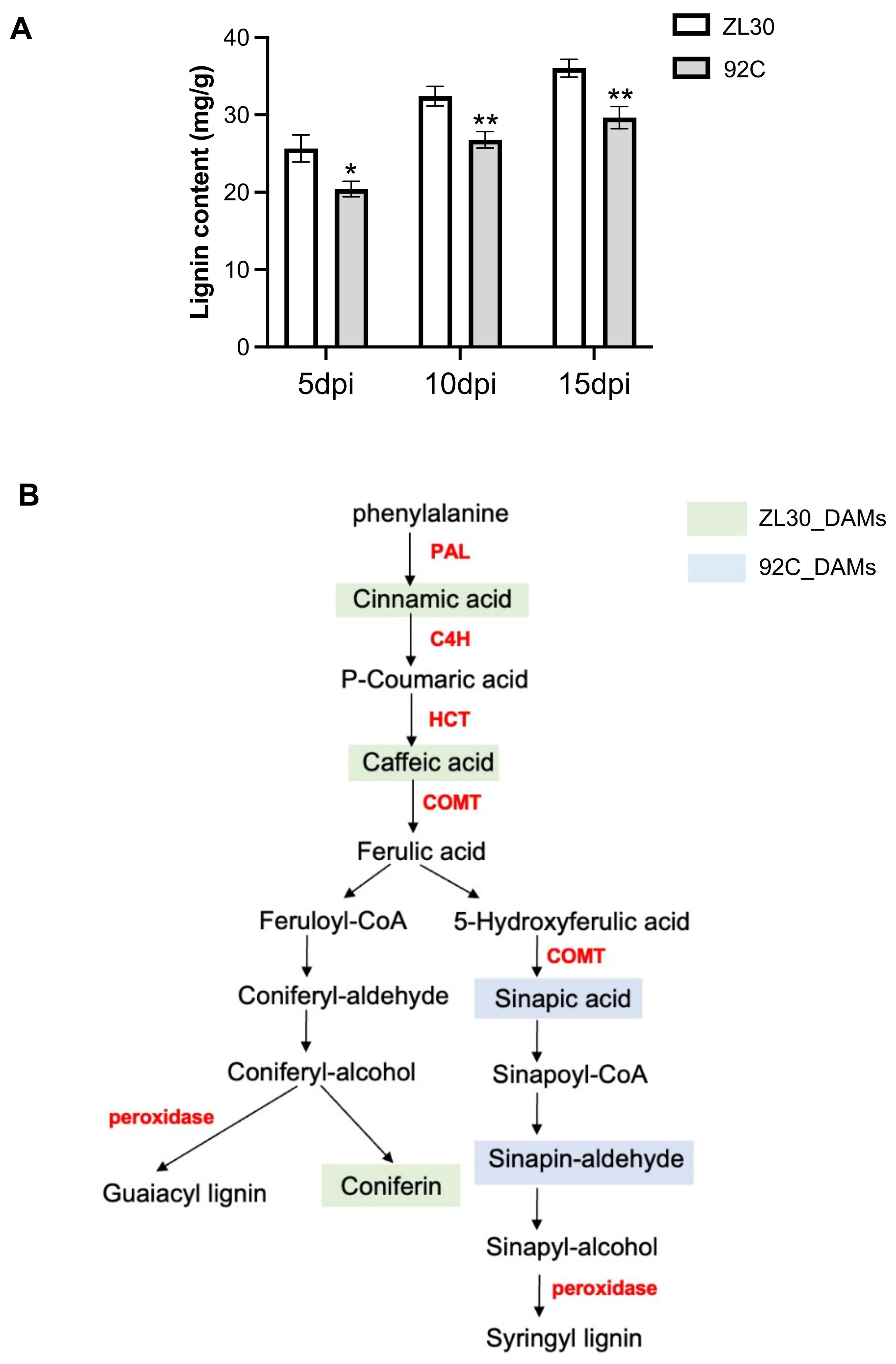2.5. The Role of Lignin Biosynthesis in Maize Resistance to Fusarium Ear Rot