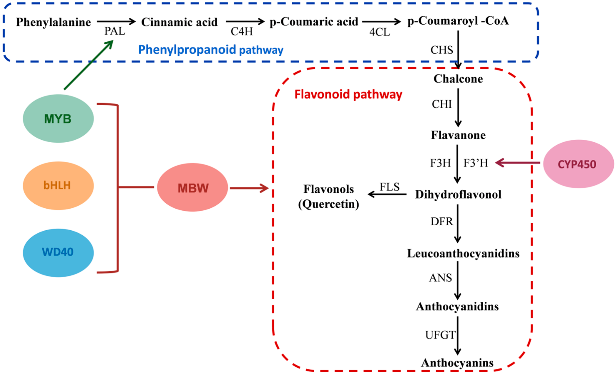 - Xu, W.; Dubos, C.; Lepiniec, L. Transcriptional control of flavonoid biosynthesis by MYB-bHLH-WDR complexes. Trends Plant Sci. 2015, 20, 176–185. [Google Scholar] [CrossRef]