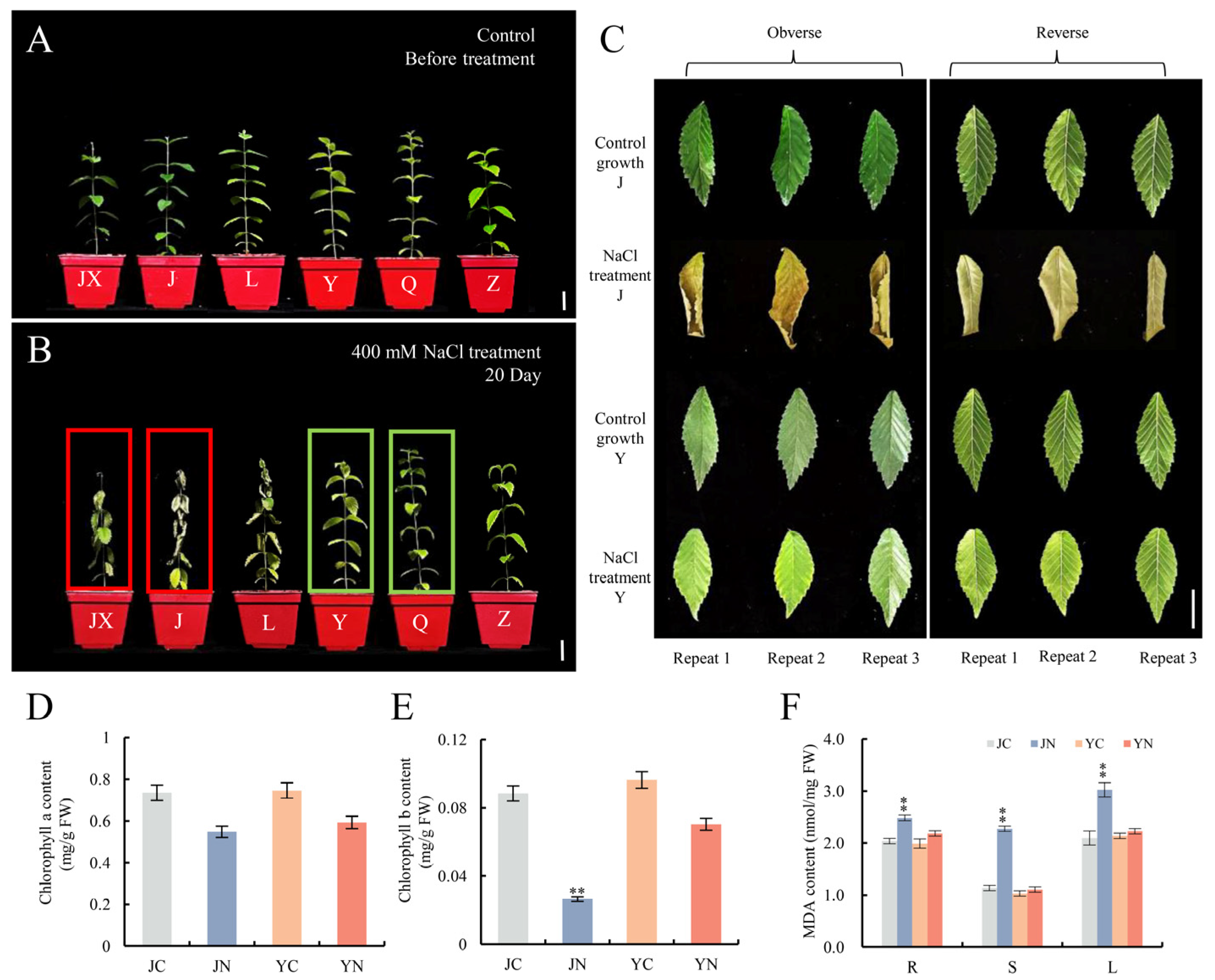 2.1. Salt Stress Treatment and Phenotypic Screening of Elm Cultivars