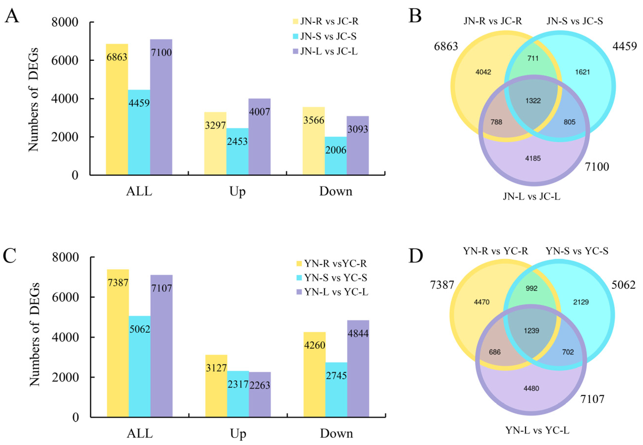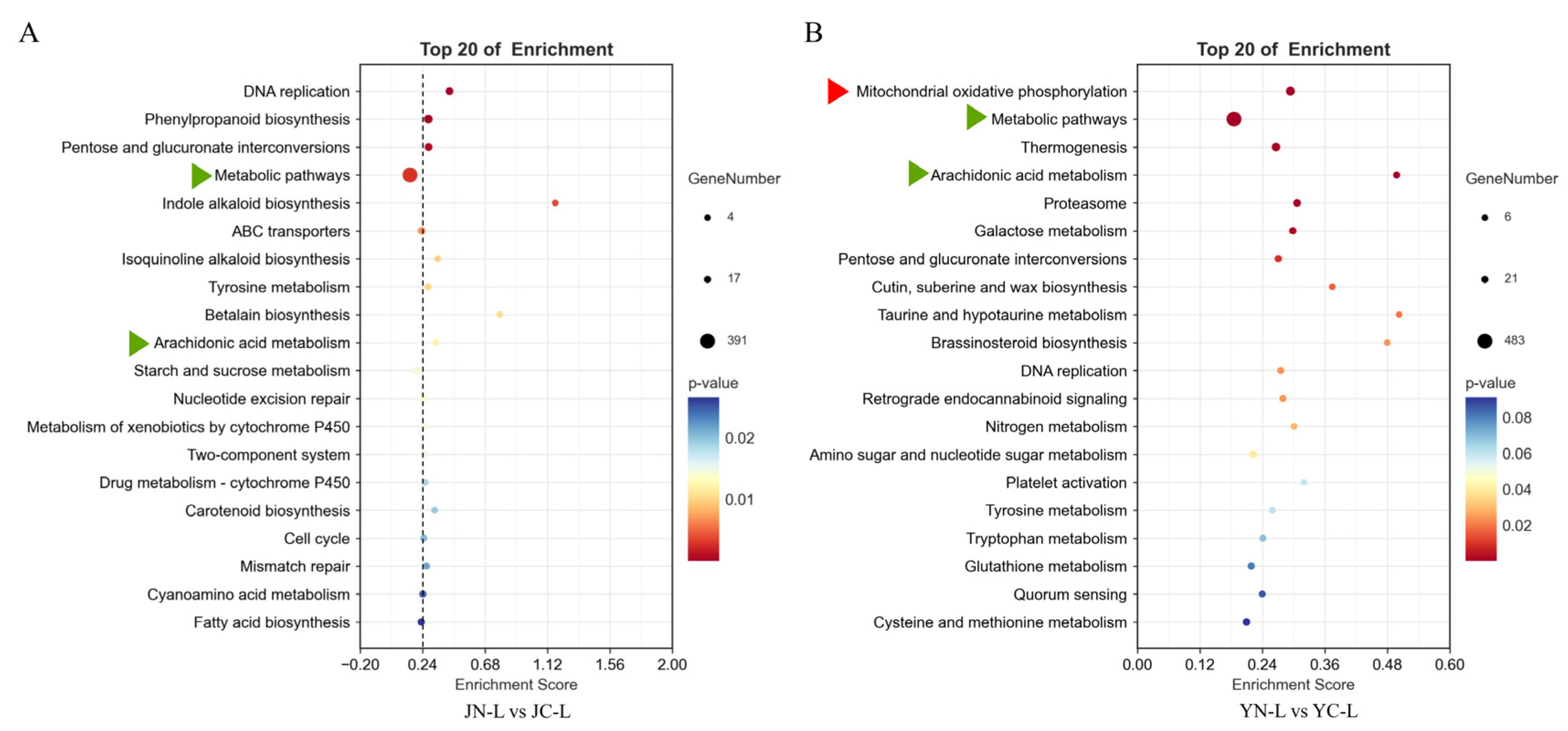 2.4. Pathway of Salt-Responsive Genes in SS-J and ST-Y via KEGG Enrichment Analysis