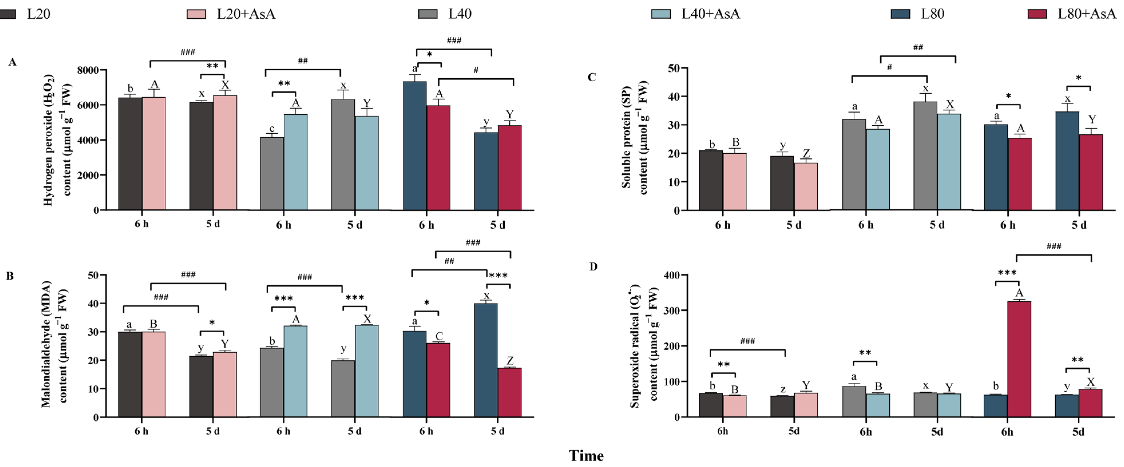 4.5. Measurement of H2O2, MDA, SP, and O2•−