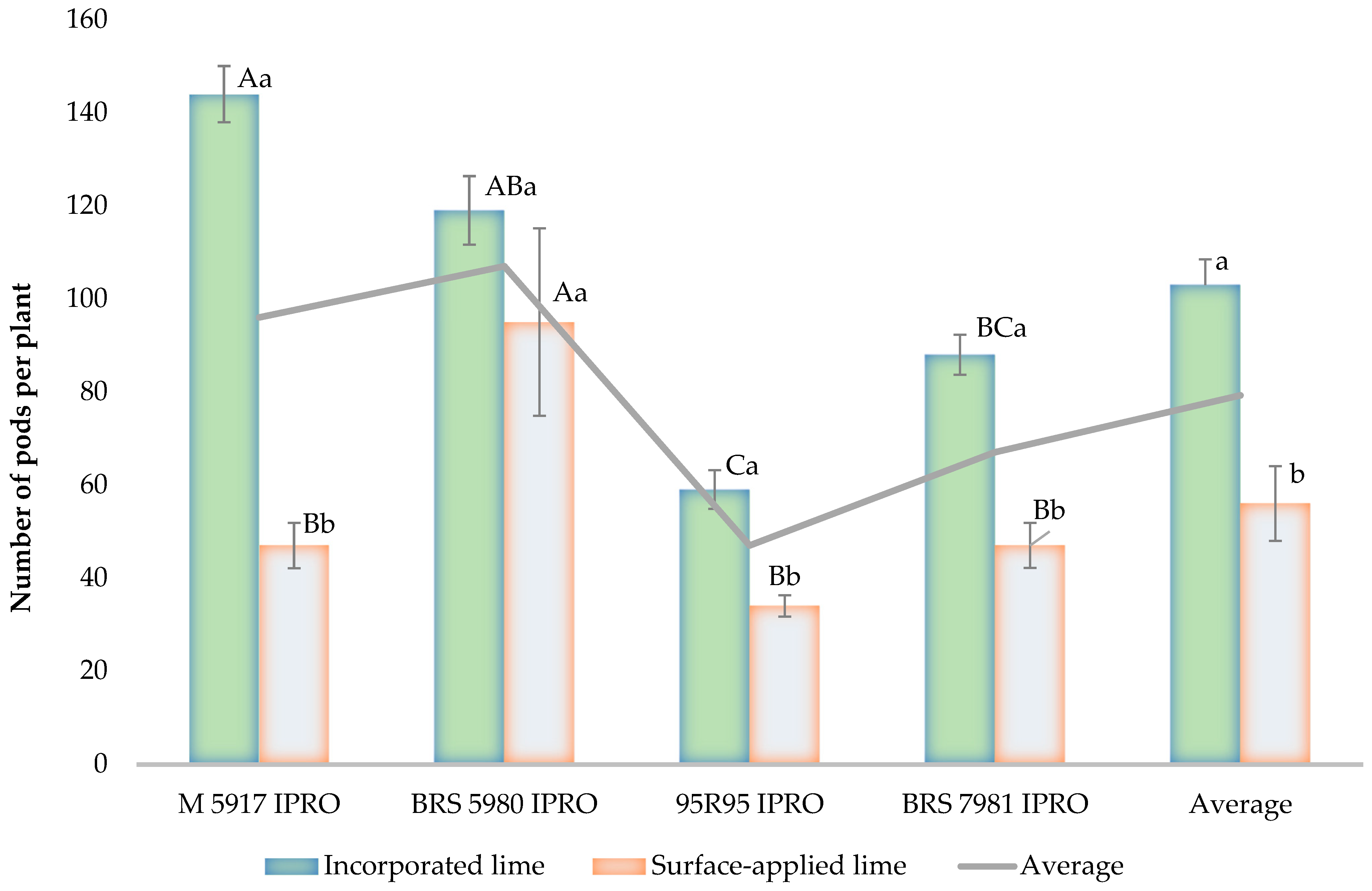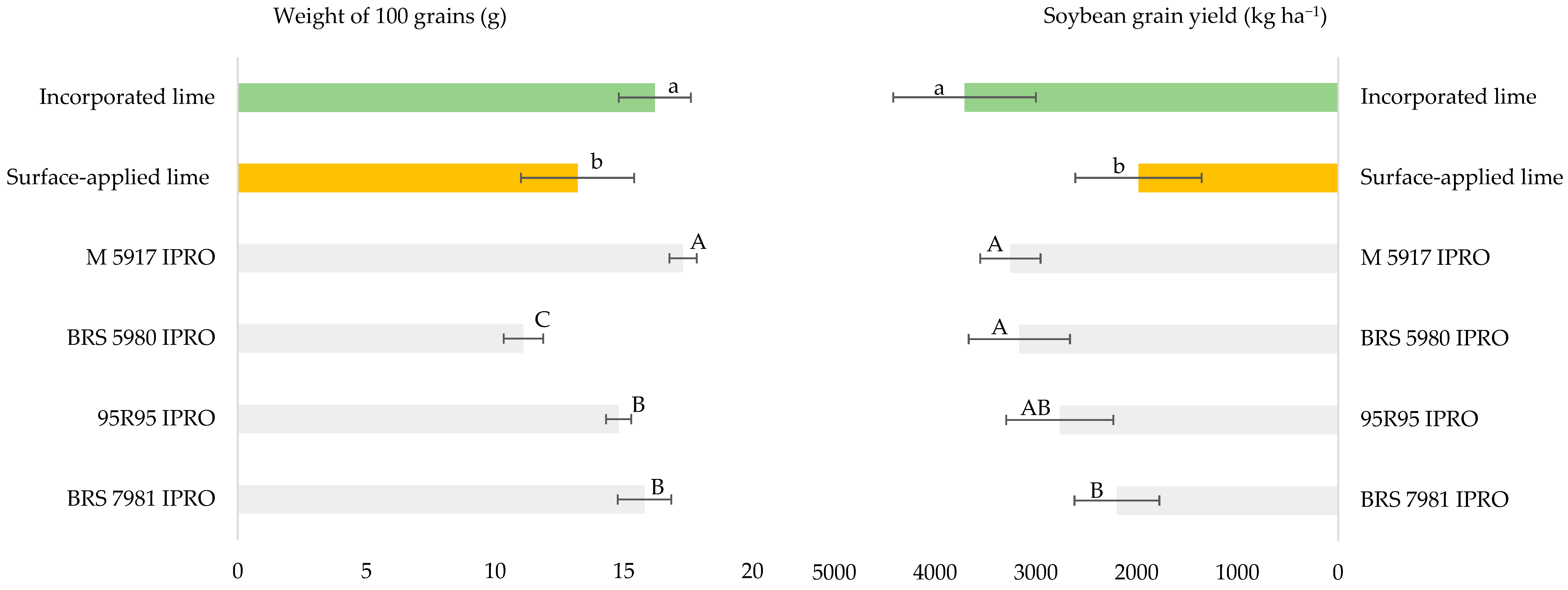 | BRS 5980 IPRO | 61.2 | 41.2 | 51.2 B | 11.64 Ba | 10.24 ABb | 10.94 B | |||