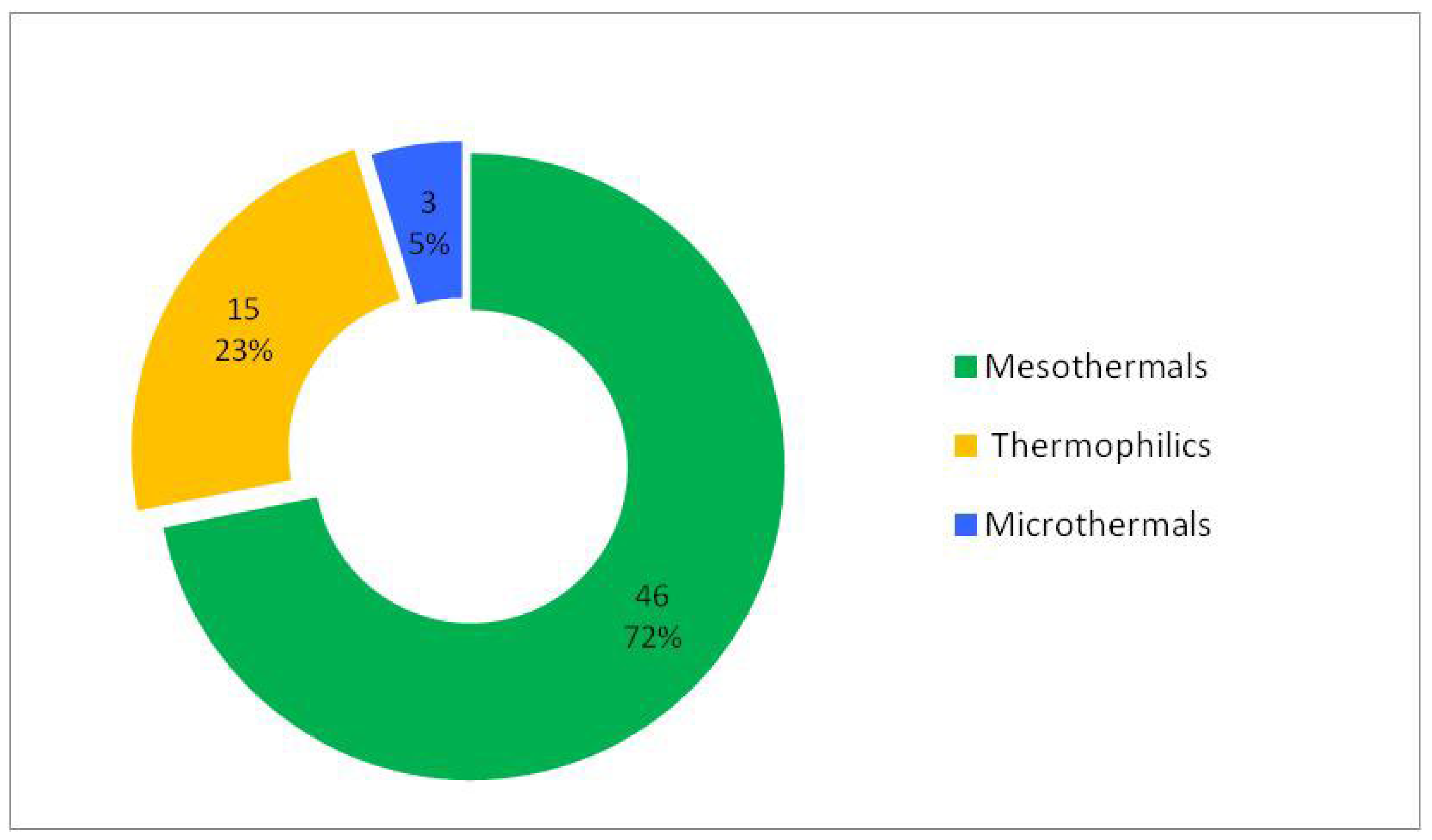 Thermally, the woody flora of the studied ecosystem is dominated by mesothermal species (approximately 72%) (Table 2, Figure 6), which indicates a moderate temperate climatic character of the ecosystem, while thermophilous species form a secondary but well-defined component (approximately 23%), confirming sub-Mediterranean influences or locally warmer conditions. Microthermic elements are scarce (approximately 5%) and are represented by tree species (mega- and mesophanerophytes) (Figure 7), indicating the presence of restricted cooler microhabitats. This structure reflects a temperate climatic framework with localised warm influences.