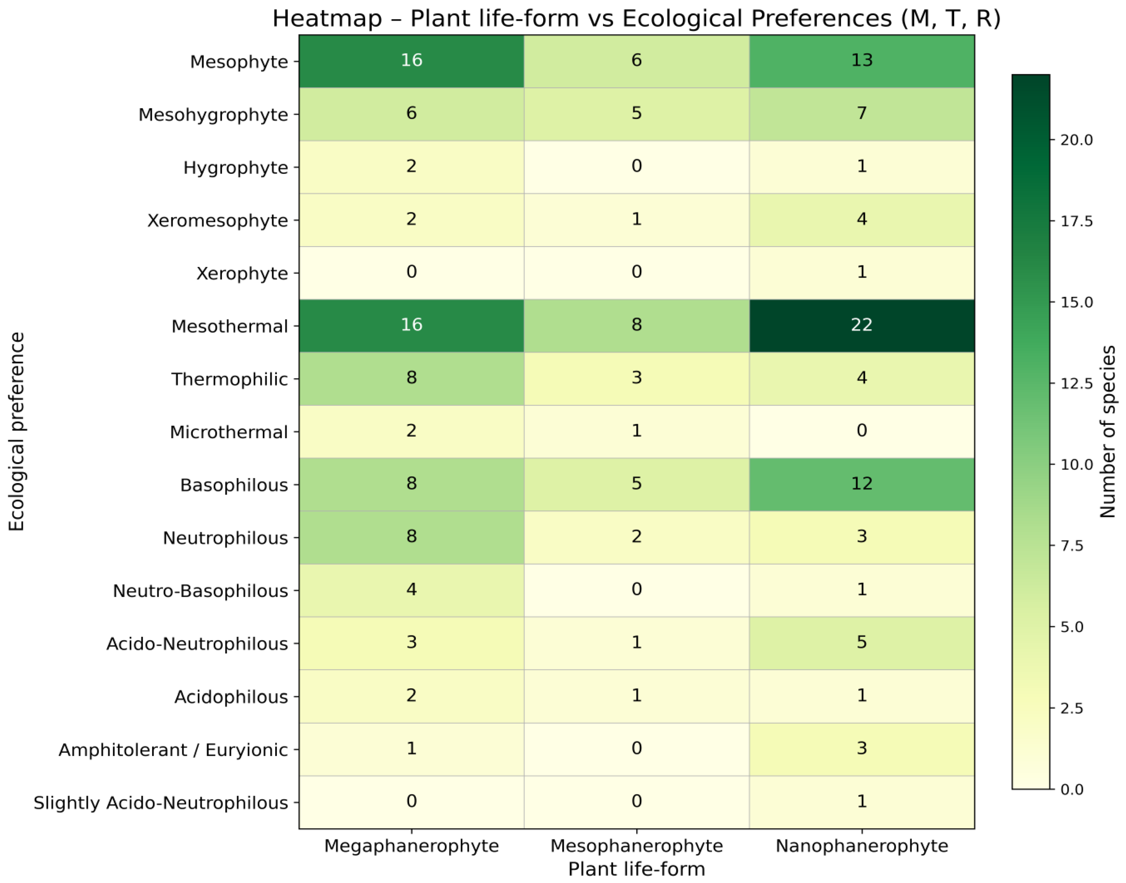 Megaphanerophyte (n = 26)Mesophyte16Mesothermal16Basophilous8