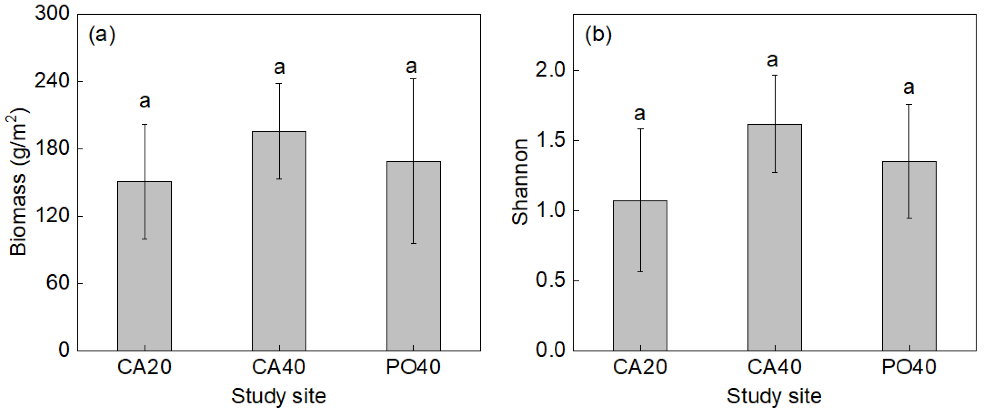 2.2. Plant Properties in Different Restoration Sites