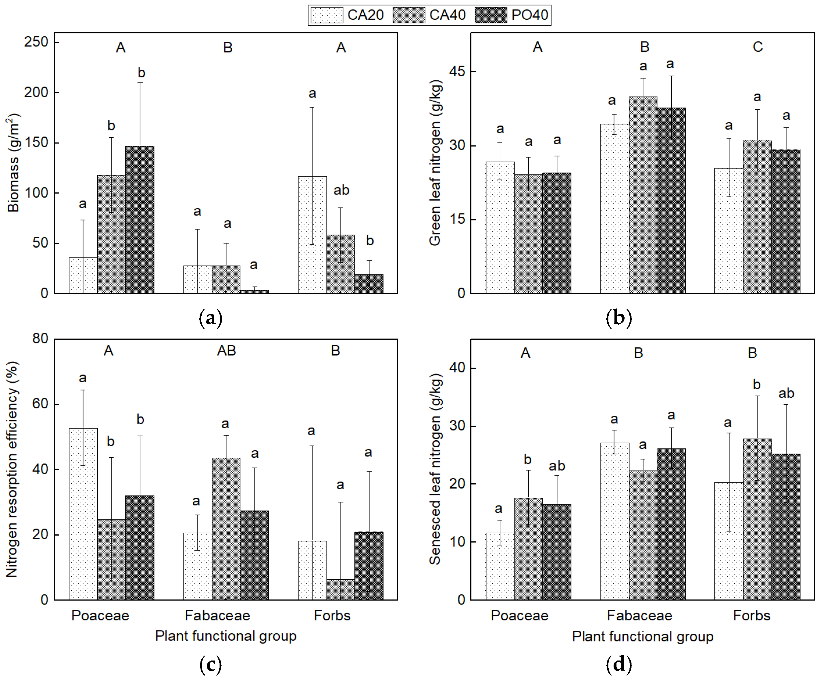 - Huang, G.; Su, Y.G.; Mu, X.H.; Li, Y. Foliar nutrient resorption responses of three life-form plants to water and nitrogen additions in a temperate desert. Plant Soil 2018, 424, 479–489. [Google Scholar] [CrossRef]