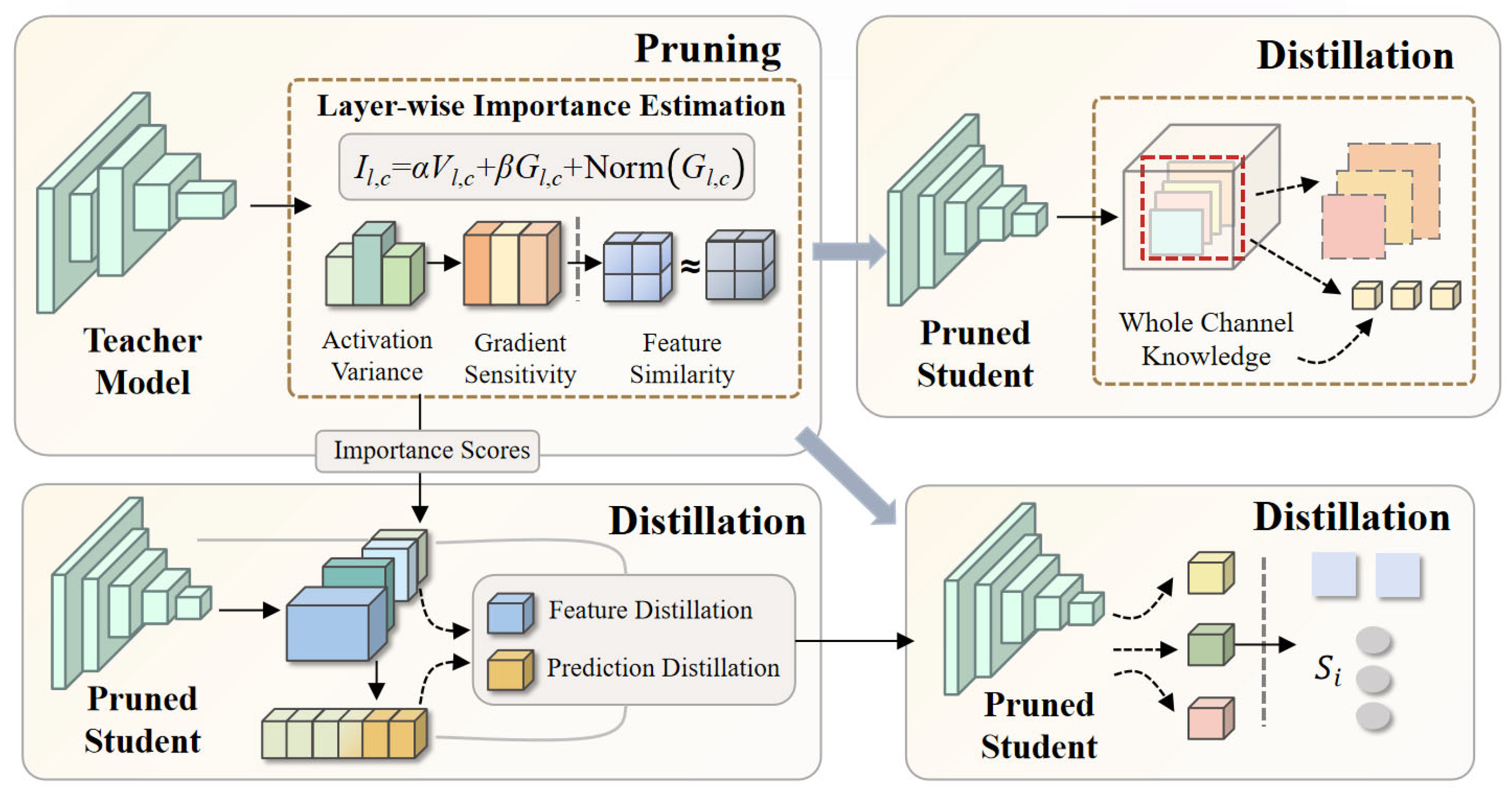 26] after pruning, enabling the student model to align with the teacher model in terms of semantic structure.