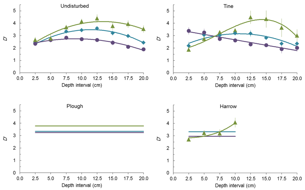 - Perfect, E.; Kay, B.D.; Ferguson, J.A.; Silva, A.P.; Denholm, K.A. Comparison of functions for characterizing the dry aggregate size distribution of tilled soil. Soil Tillage Res. 1993, 28, 123–139. [Google Scholar] [CrossRef]