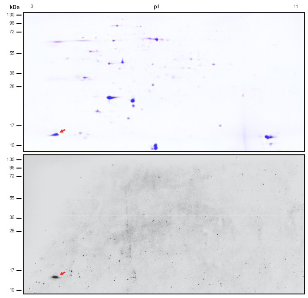 3.2. Proteins Separation by 2D IEF-SDS PAGE